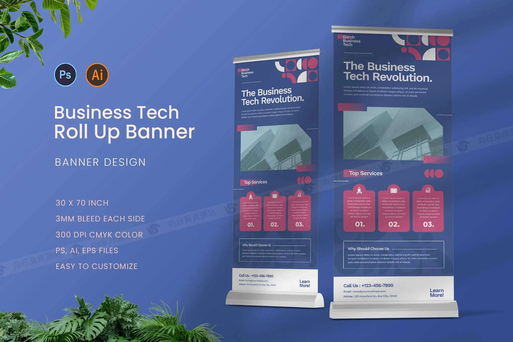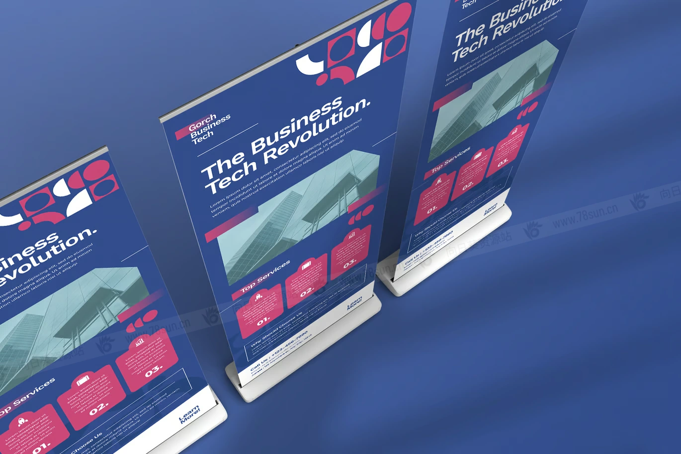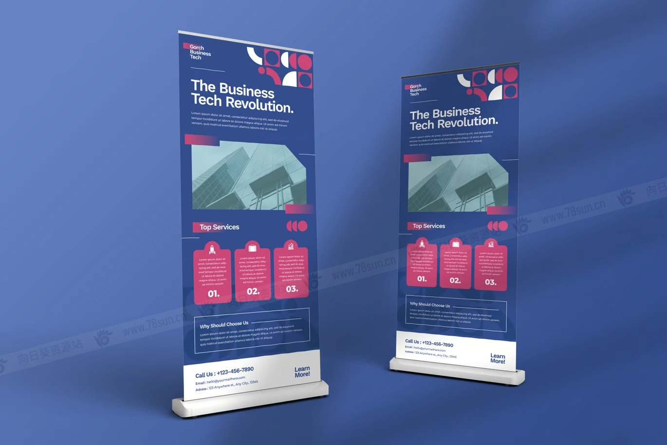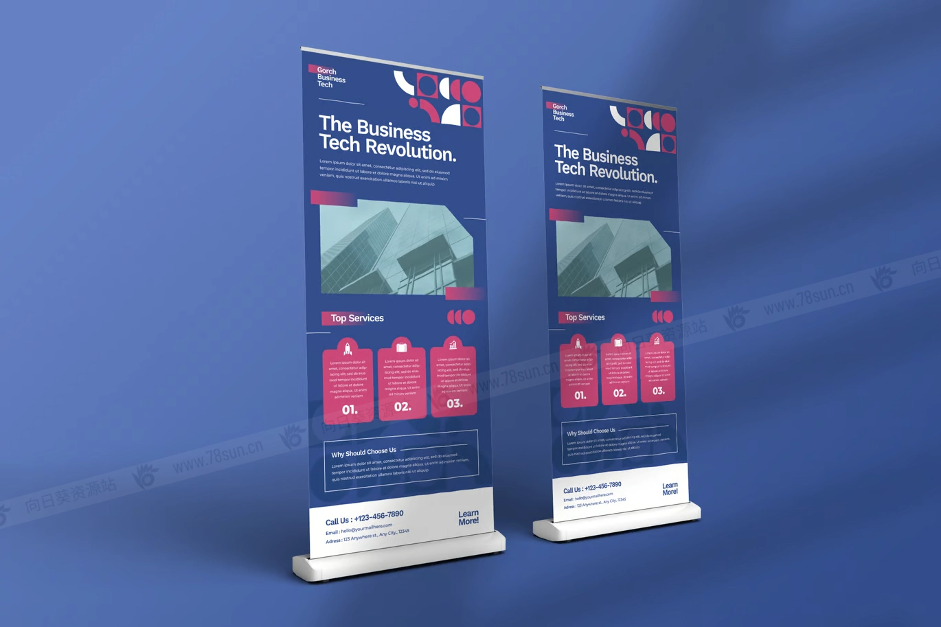 商务科技宣传活动展架易拉宝psd ai设计模板此模板适用于任何项目目的。非常易于使用和可编辑。