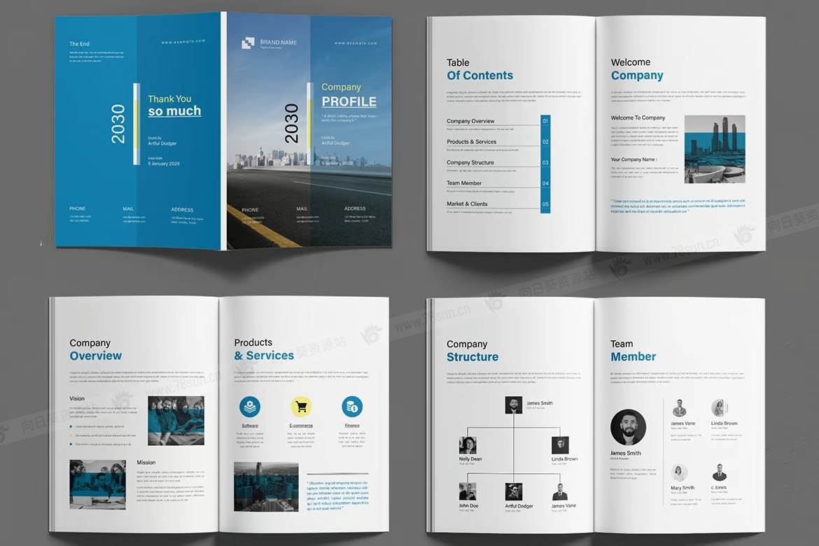 公司简介小册子杂志宣传册画册indd设计模板,展示了公司的使命、愿景、服务和成就。它包括公司历史、核心价值观、团队和联系方式等关键信息。