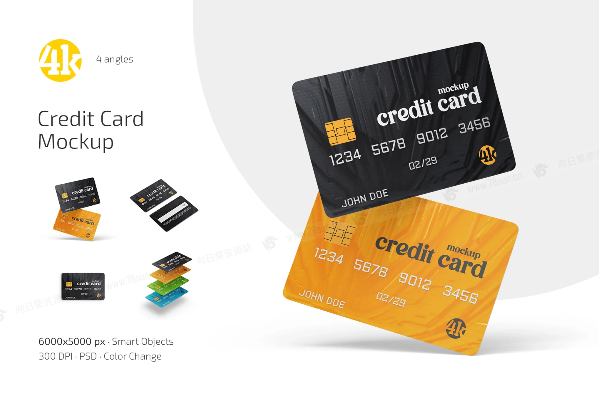 银行卡信用卡VI效果图展示智能贴图psd设计样机,展示您的徽标、品牌等。毕竟,它是以高分辨率制作的。智能对象可以节省大量时间。只需点击智能对象几次,添加您自己的图形并保存结果。