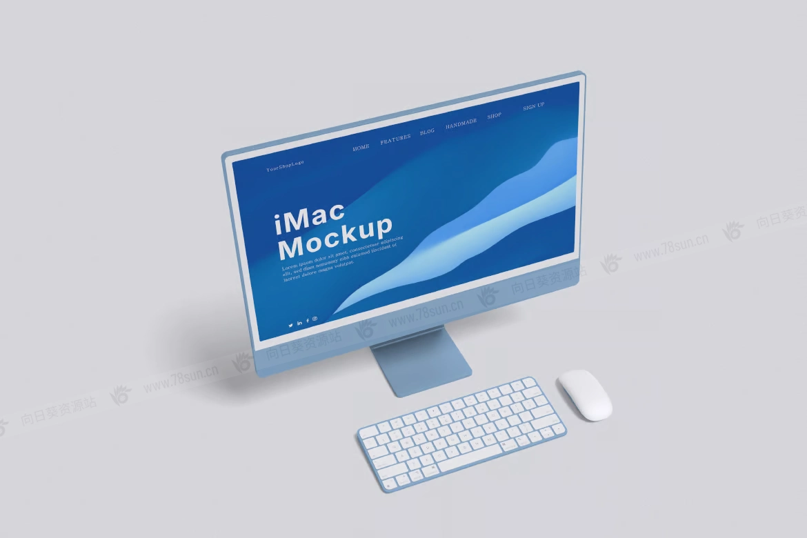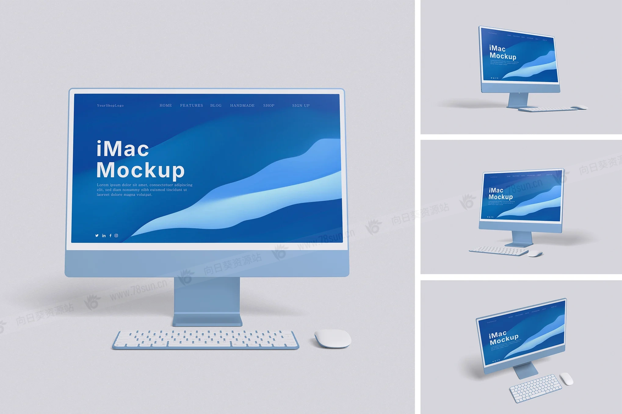 桌面iMac粘土电脑UI效果图展示智能贴图psd设计样机。此模型包括 4 个具有分层良好 PSD 文件,并且此模型还使用智能对象功能,这意味着您可以在几秒钟内轻松快速地使用自己的设计更改当前设计。