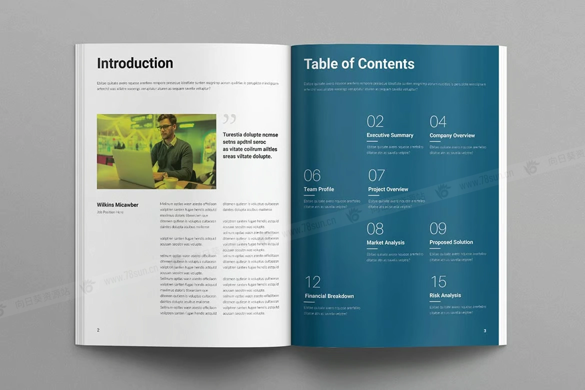 公司简介项目提案小册子杂志宣传册画册indd设计模板,有 2 种尺寸可供选择,国际 A4 和美国信纸。颜色模式为 CMYK。免费字体,这些字体在帮助文件中链接。此模板中的所有元素都按层组织并与网格对齐。模板带有预制的中性调色板,但是您只需单击一下即可更改颜色以适应您的品牌调色板。