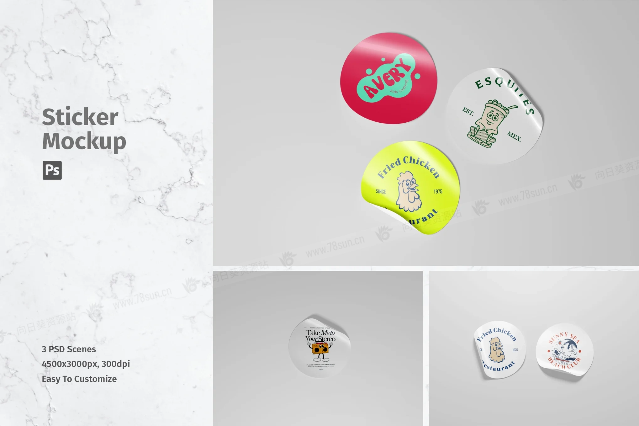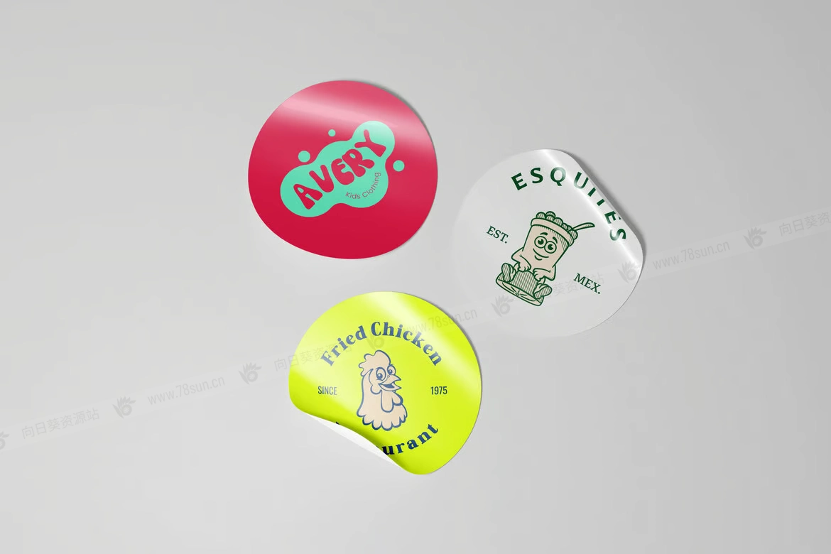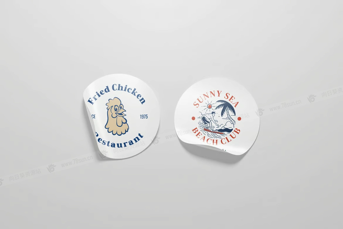 圆形剥皮贴纸品牌VI效果图展示智能贴图psd设计样机,使用智能对象功能轻松快速地替换设计。提供 PSD Photoshop 格式,具有智能对象功能,可帮助您在几秒钟内将当前设计替换为自己的设计。