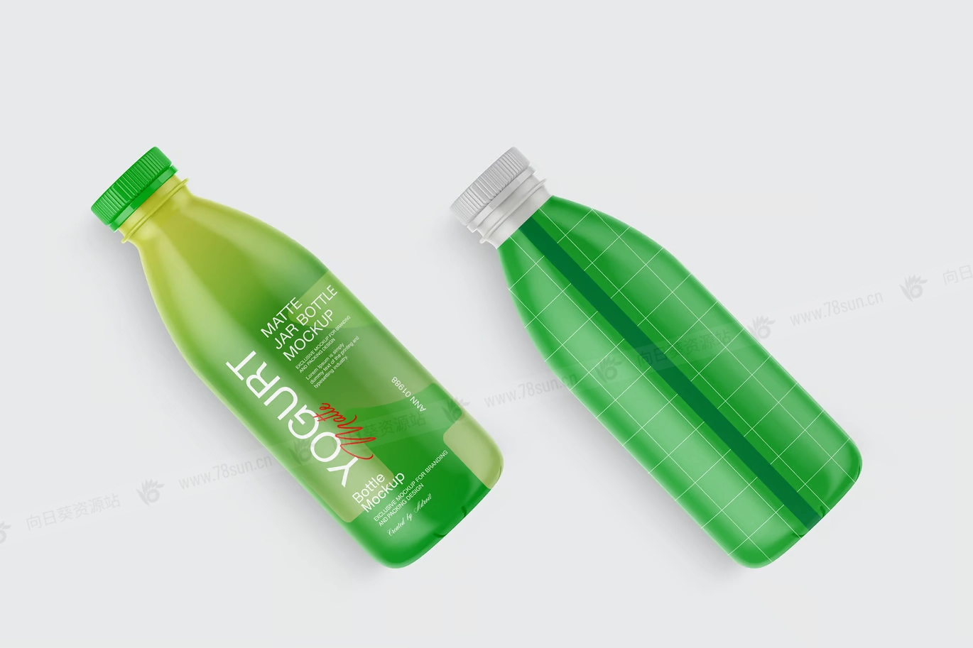 哑光塑料酸奶饮料瓶品牌VI效果图展示智能贴图psd设计样机。文件中有彩色项目和背景的单独图层。您可以借助贴纸的智能图层来应用您的设计。我们的商品质量最高,使用简单。
