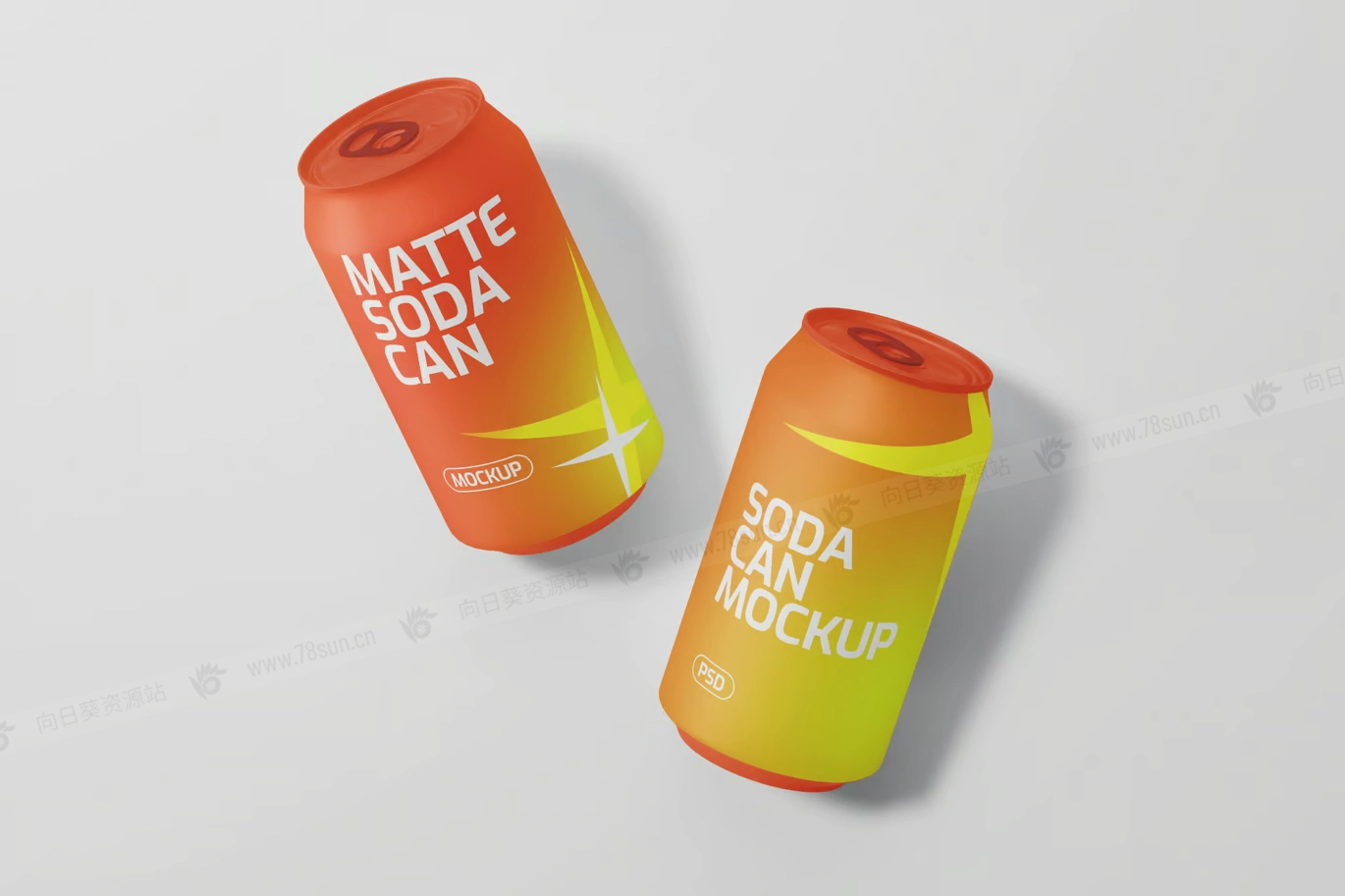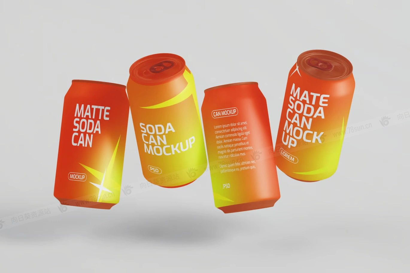 汽水饮料易拉罐头品牌VI效果图展示智能贴图psd设计样机,
