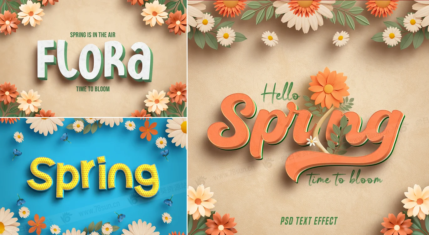 高品质春季文字效果套装,表达您的感受或用春天的花卉氛围为您的设计创造外观。使用 Photoshop 智能对象功能使这些文本效果文件易于编辑,您可以在其中轻松替换文本和设计,以在几秒钟内制作出您喜欢的外观。这些文件是高度可定制的,因此您可以创建您选择的不同外观。您可以按照用户指南 (PDF) 中的说明进行作。