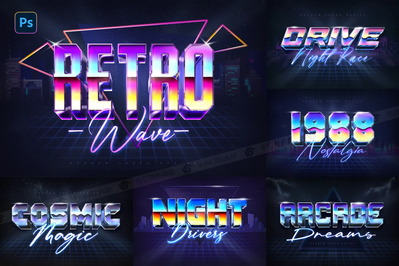 非常适合海报、社交媒体、品牌推广等。准备好回到 80 年代,让您的排版闪耀着霓虹灯的光彩和数字怀旧之情!