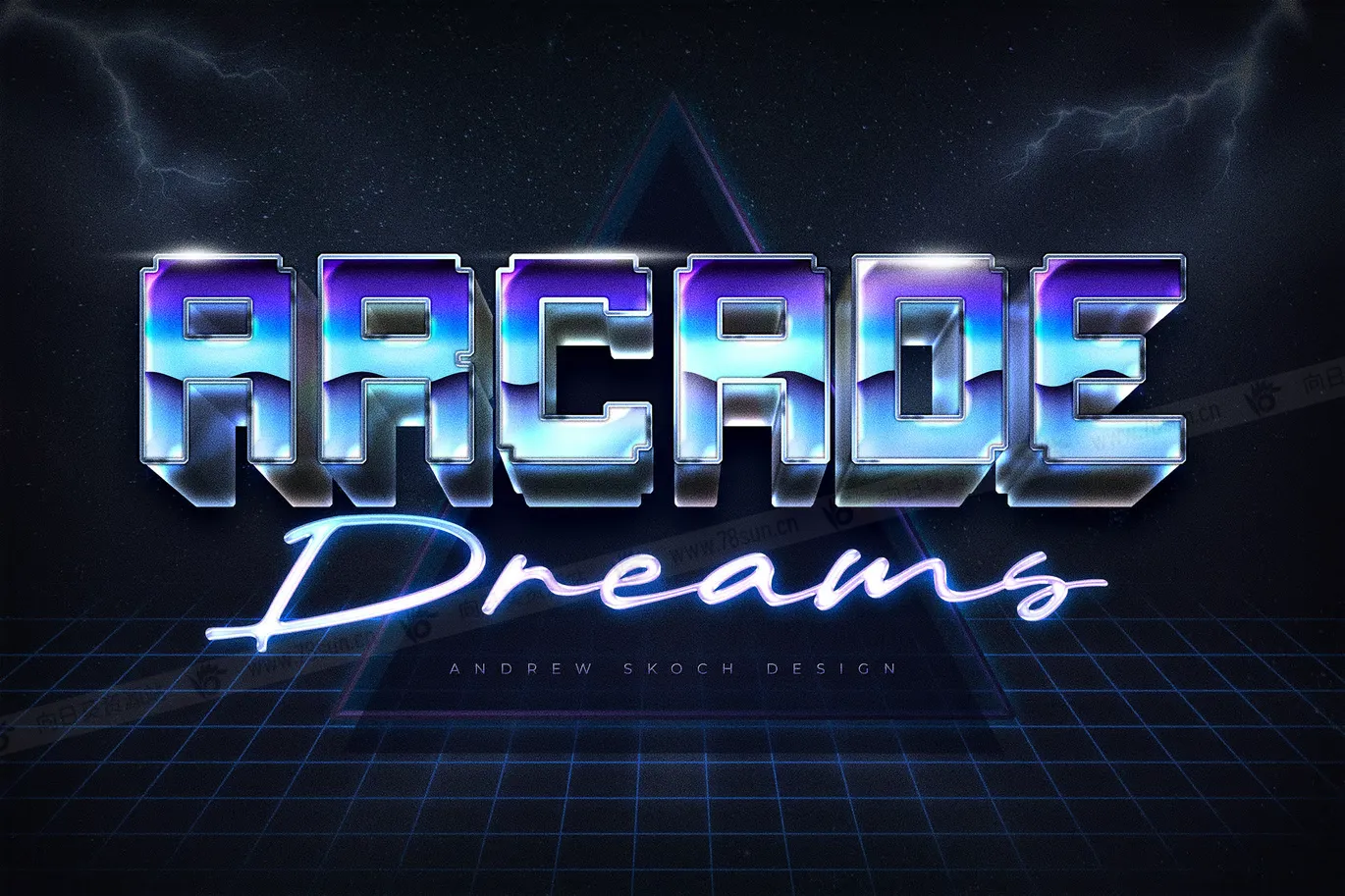3D立体复古渐变游戏文本字体文字效果psd设计模板!这些效果的灵感来自复古街机游戏的大胆美学、霓虹灯照亮的街道和合成波音乐,为您的排版带来怀旧而现代的感觉。该系列具有充满活力的霓虹灯、镀铬饰面、像素化风格和未来主义渐变,非常适合海报、徽标、社交媒体图形等。