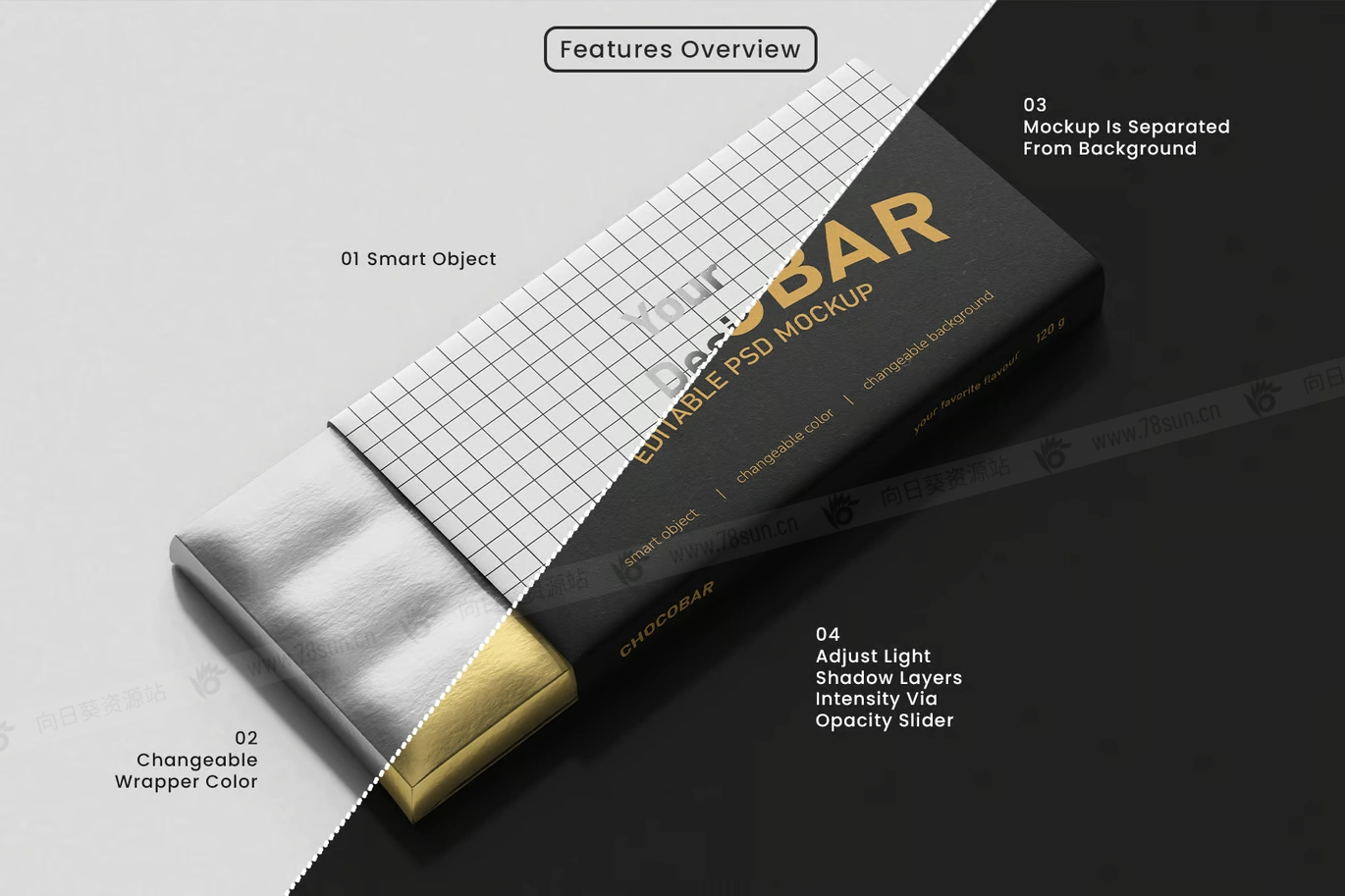 巧克力泡泡糖包装品牌VI效果图展示智能贴图psd设计样机。介绍这款巧克力糖果棒包装模型包。具有如逼真的外观、易于编辑和完全可定制的功能。
