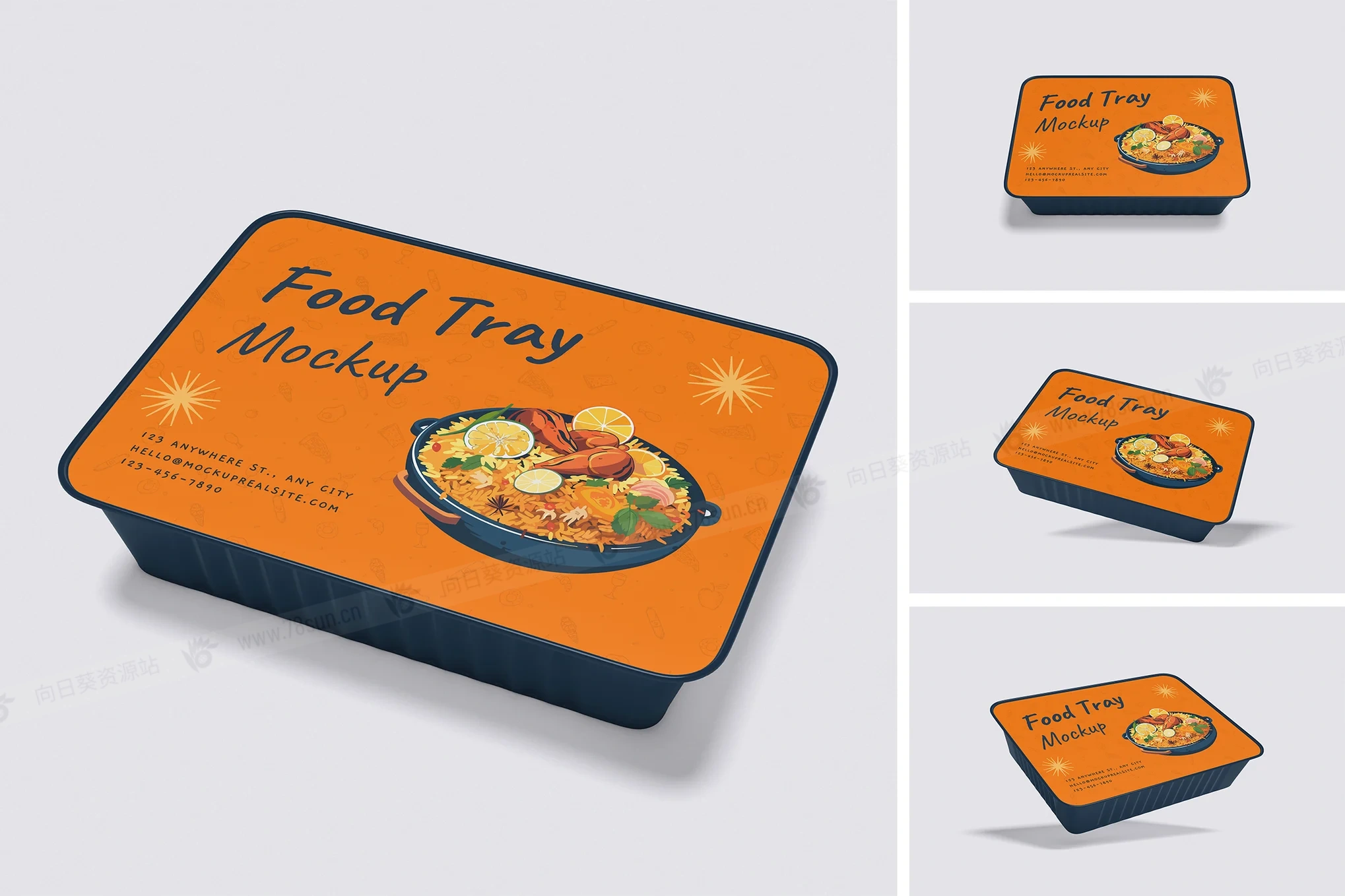 带标签外卖打包盒食品包装塑料盒品牌VI效果图展示智能贴图psd设计样机,此模型包括 04 个具有分层良好 PSD 文件,并且此模型还使用智能对象功能,这意味着您可以在几秒钟内轻松快速地使用自己的设计更改当前设计。