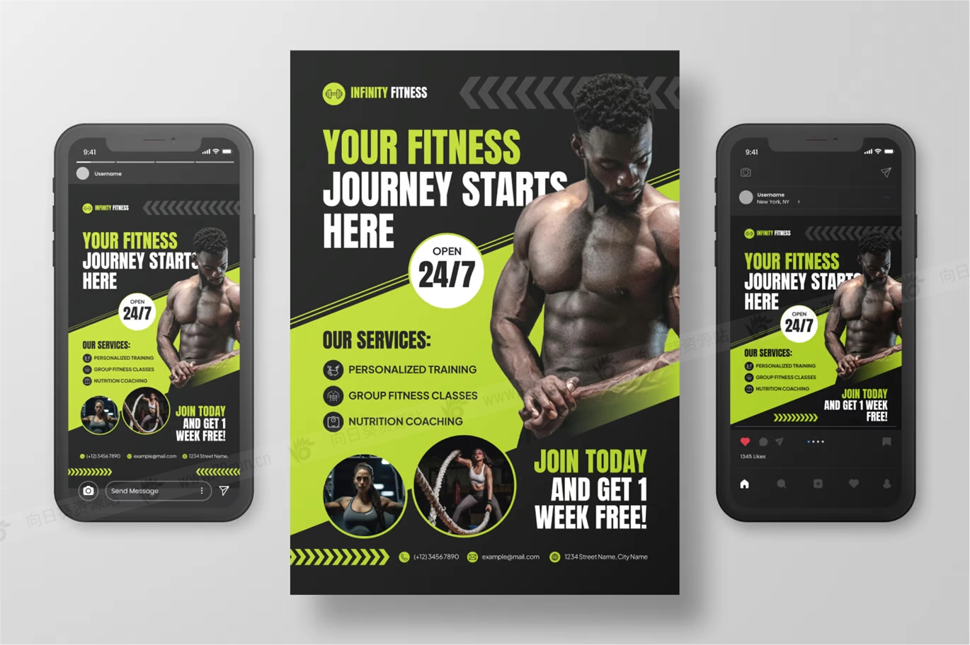 运动健身馆海报宣传单社交媒体banner主图ai设计模板,