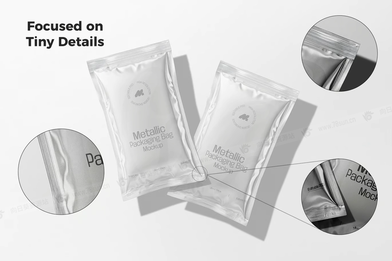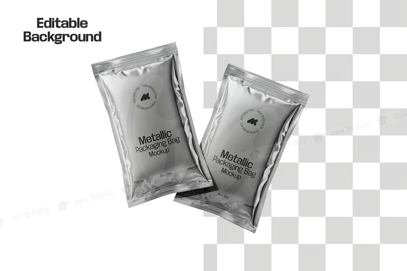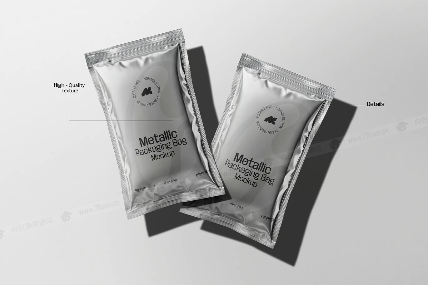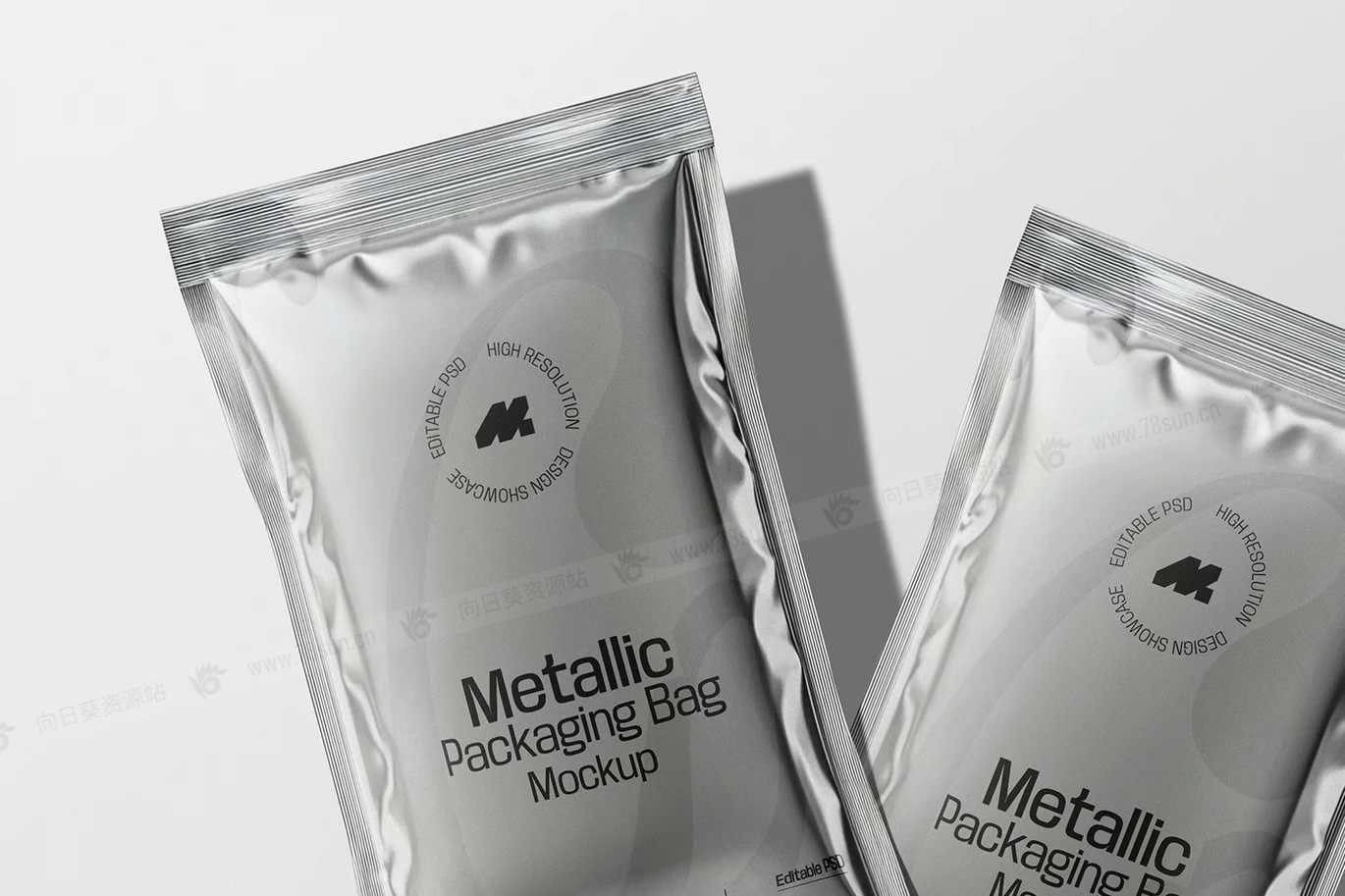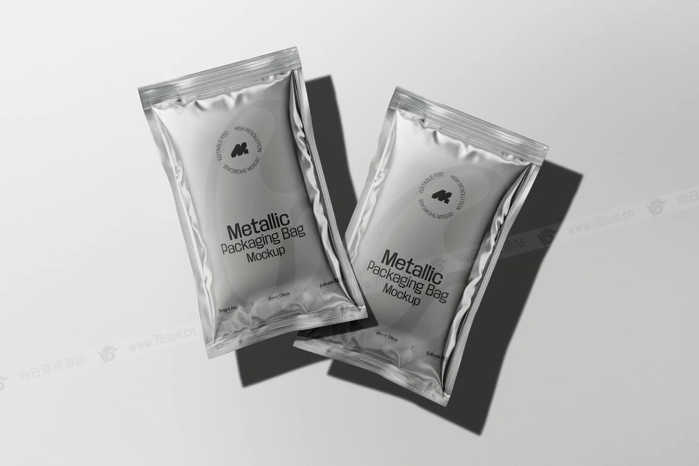 光面金属小袋包装品牌VI效果图展示智能贴图psd设计样机,是一种高质量、逼真的 3D 表示,旨在展示食品、个人护理和其他消费品的各种包装设计。这款模型非常适合咖啡、盐、糖、酱汁、洗发水和其他密封小袋商品,具有光滑的反光金属饰面,增强了包装的高档外观。完全可定制的设计允许轻松修改标签、颜色和品牌元素,
