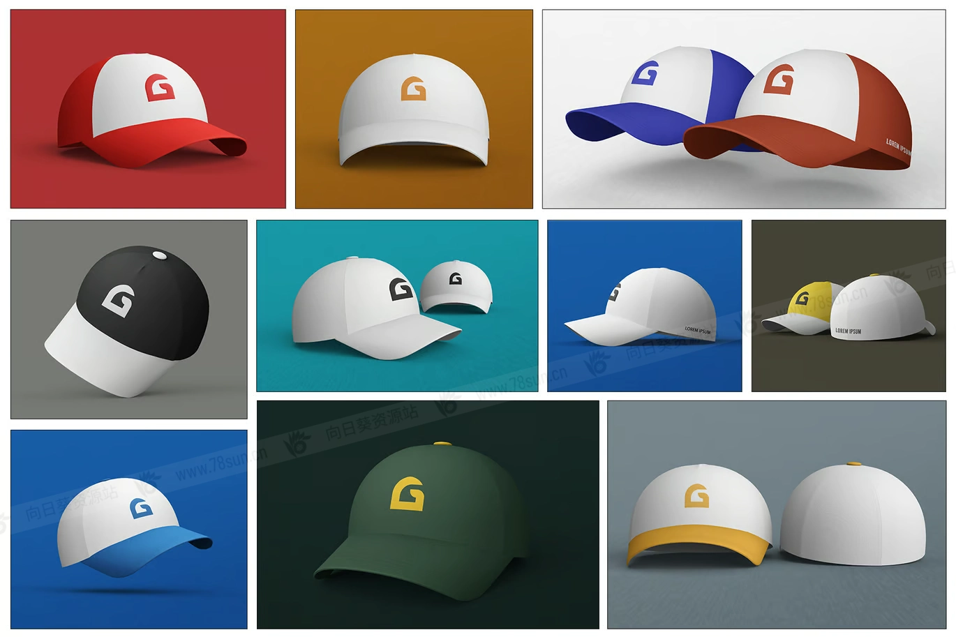 帽檐棒球帽子品牌VI效果图展示智能贴图psd设计样机,具有高质量的渲染。您可以在任何 CC 版本的 Adobe Photoshop 中使用此模型。