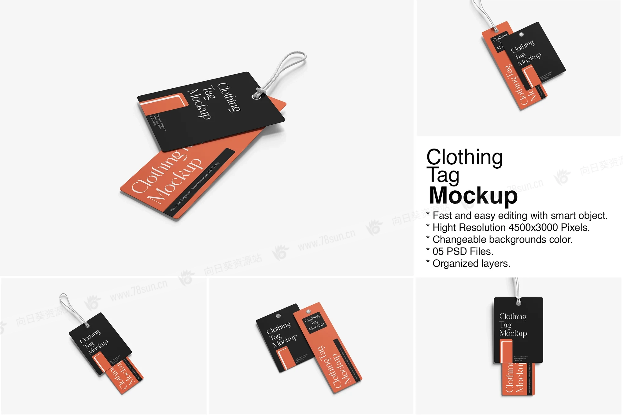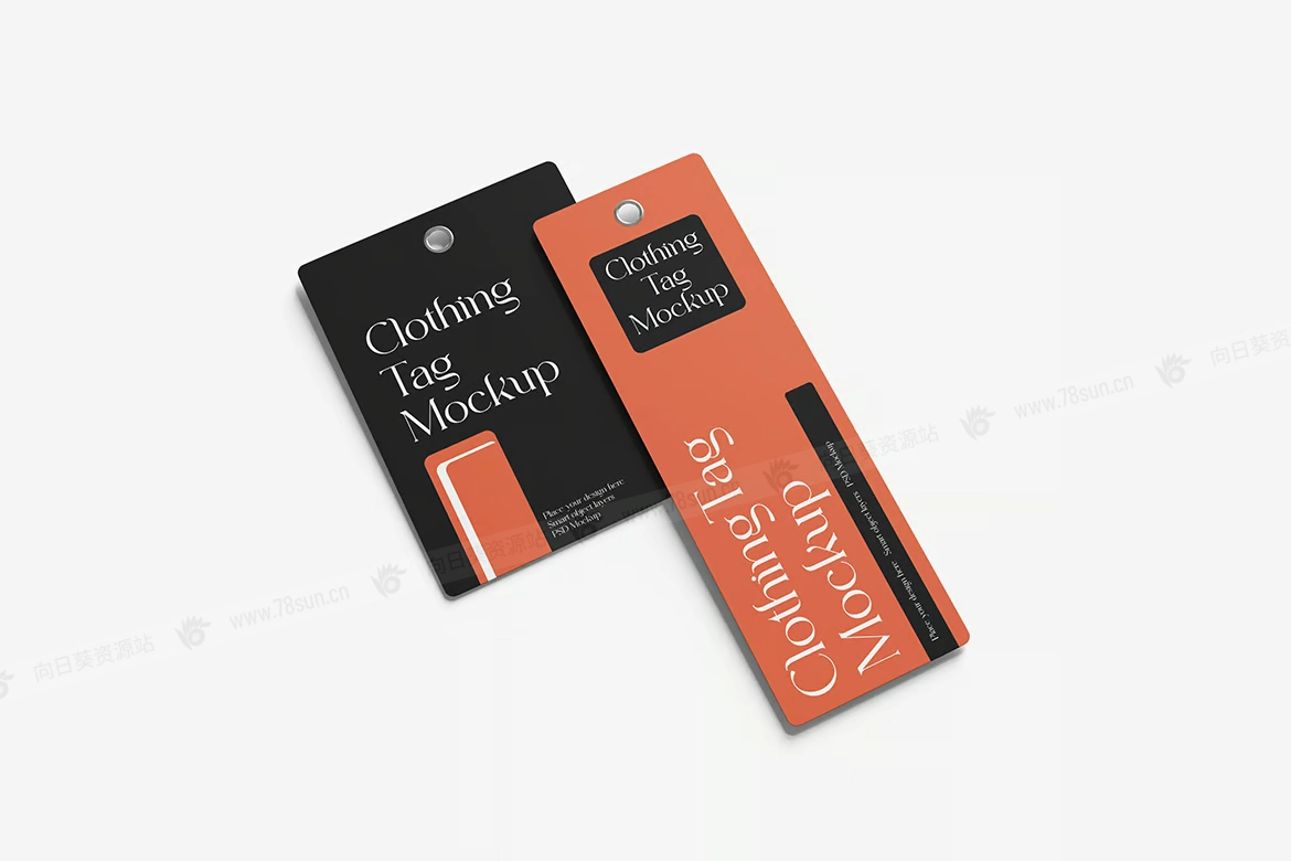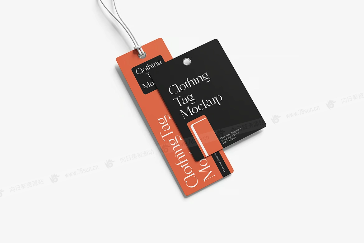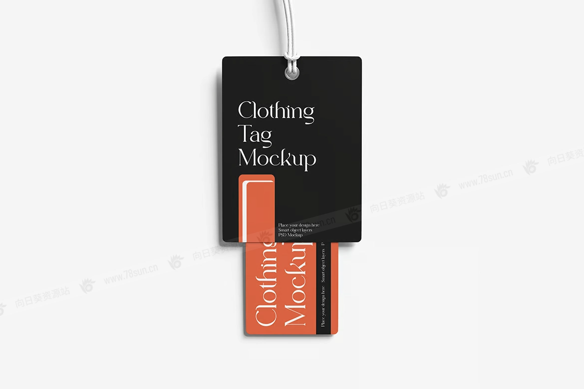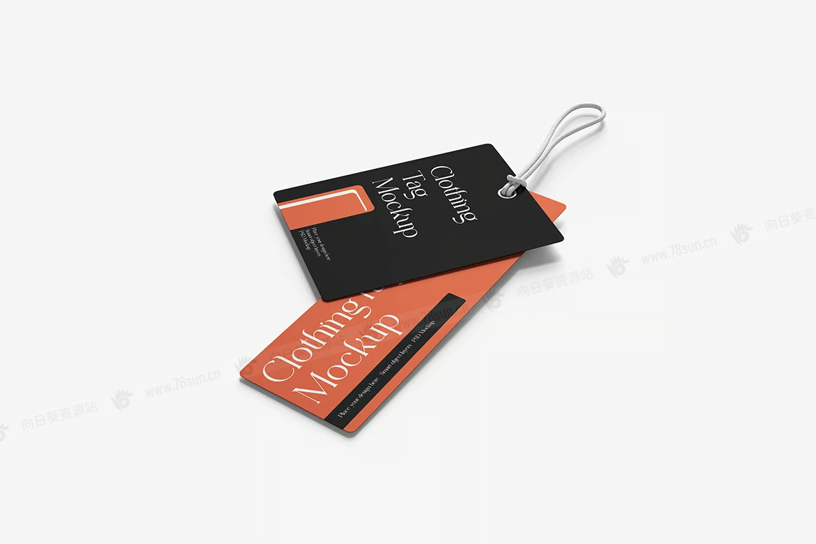 服装吊牌标签品牌VI效果图展示智能贴图psd设计样机。使用智能对象替换您的设计很容易。双击智能图层,复制并粘贴您的图稿,保存,