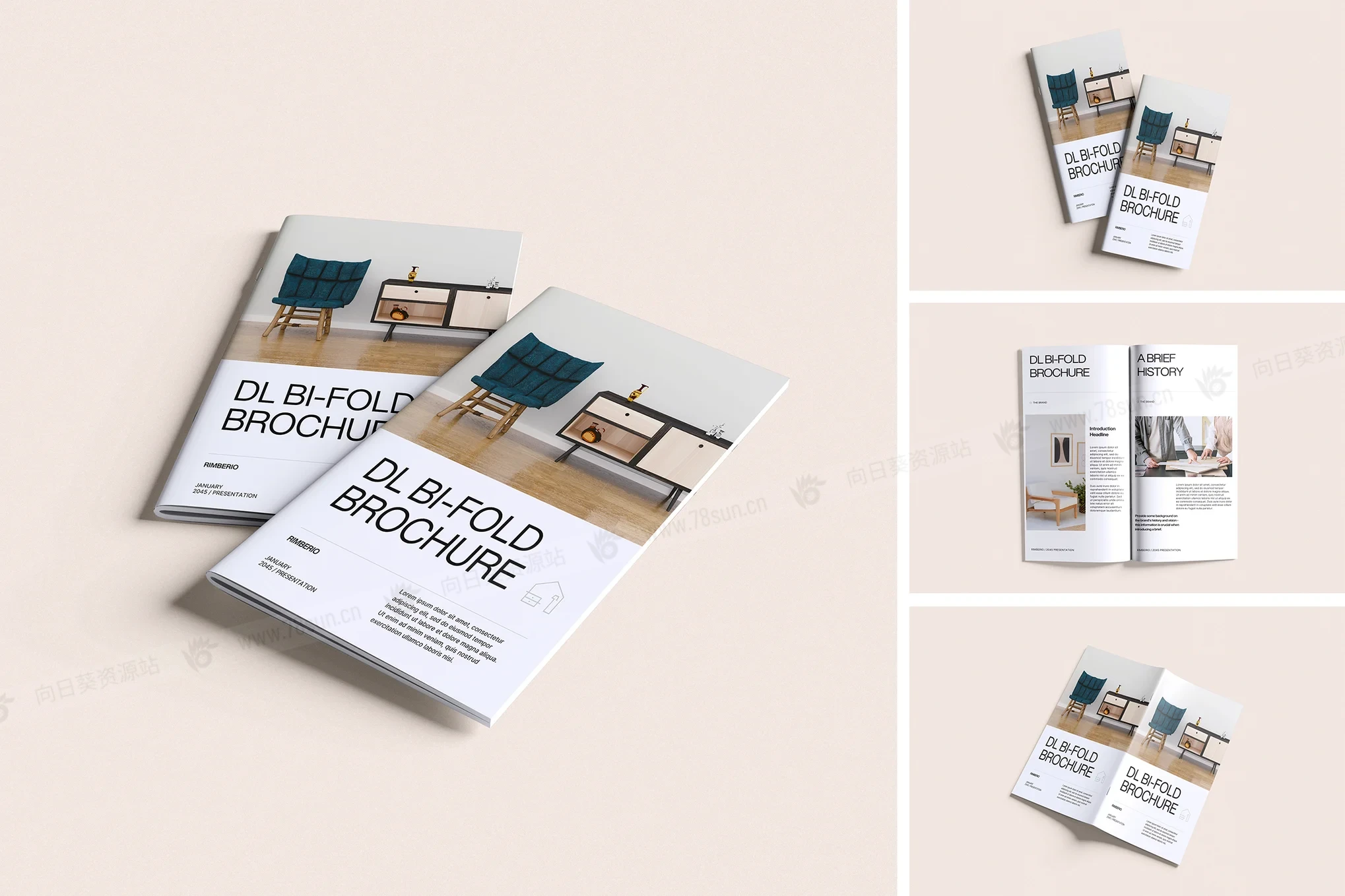 DL宣传册小册子VI效果图展示智能贴图psd设计样机。此模型包括 4 个具有分层 PSD 文件,并且此模型还使用智能对象功能,这意味着您可以在几秒钟内轻松快速地使用自己的设计更改当前设计。