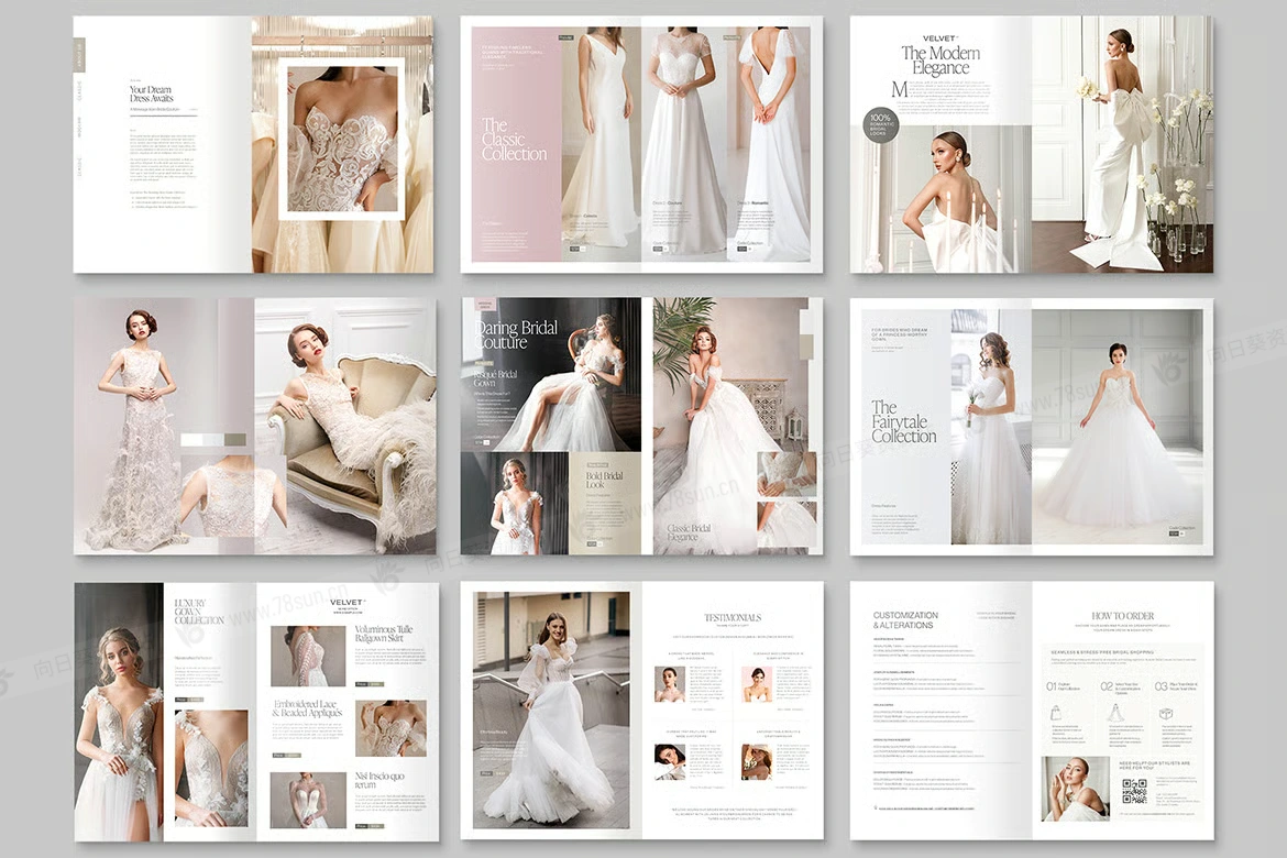 时尚生活婚礼婚庆公司目录小册子杂志宣传册画册indd设计模板,非常适合展示新娘和时尚系列。它提供 Canva、InDesign IDML 和 INDD 格式,