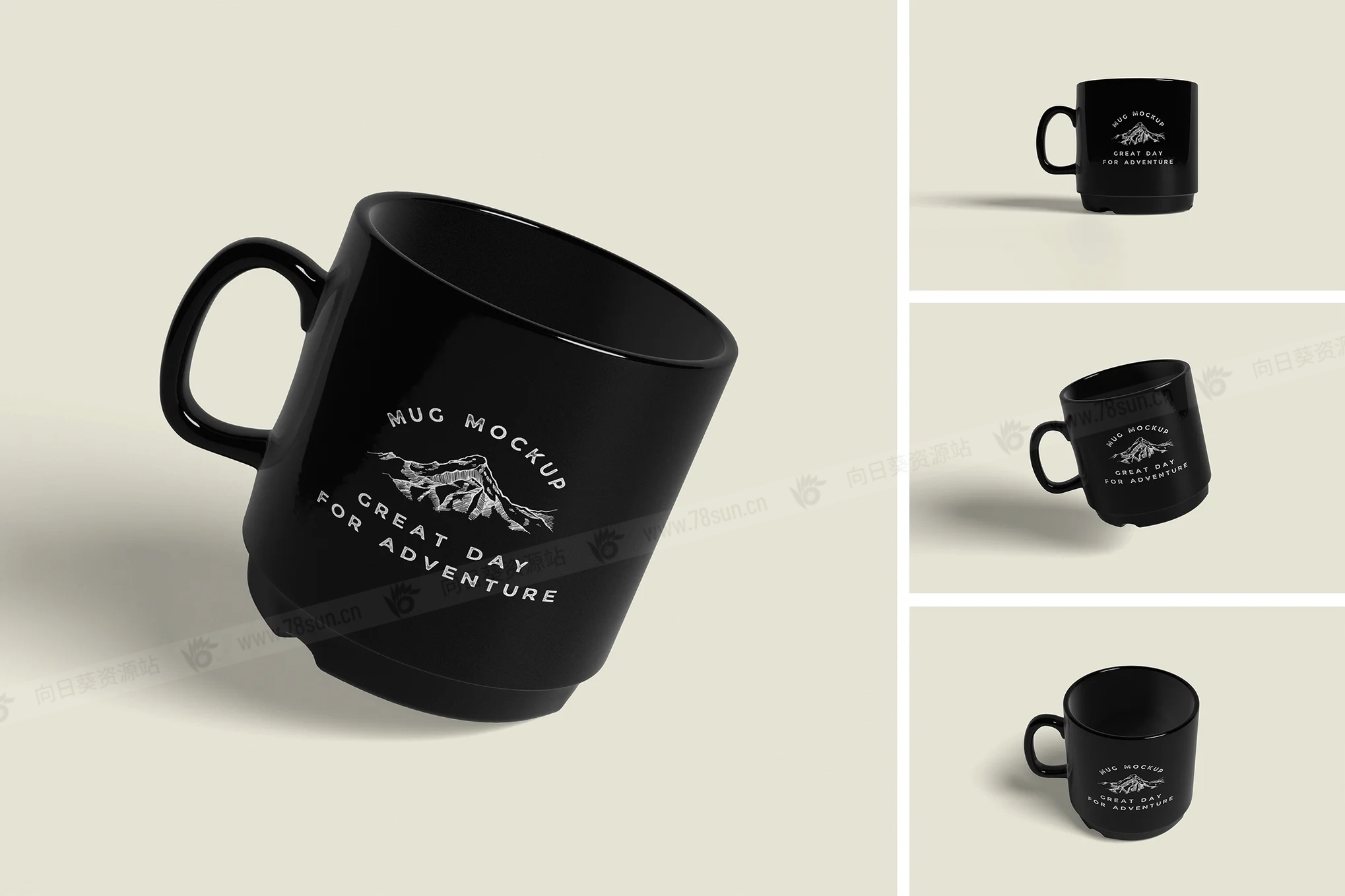 陶瓷马克杯品牌VI效果图展示智能贴图psd设计样机,此模型包括 04 个具有分层良好的 PSD 文件,并且此模型还使用智能对象功能,这意味着您可以在几秒钟内轻松快速地使用自己的设计更改当前设计。