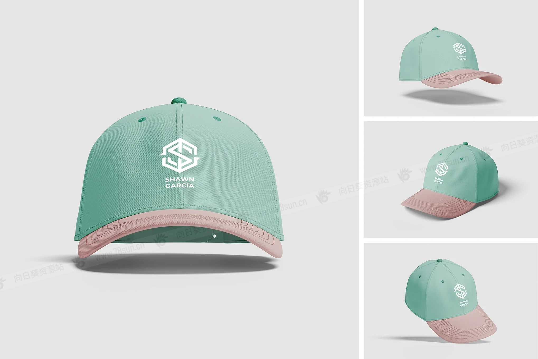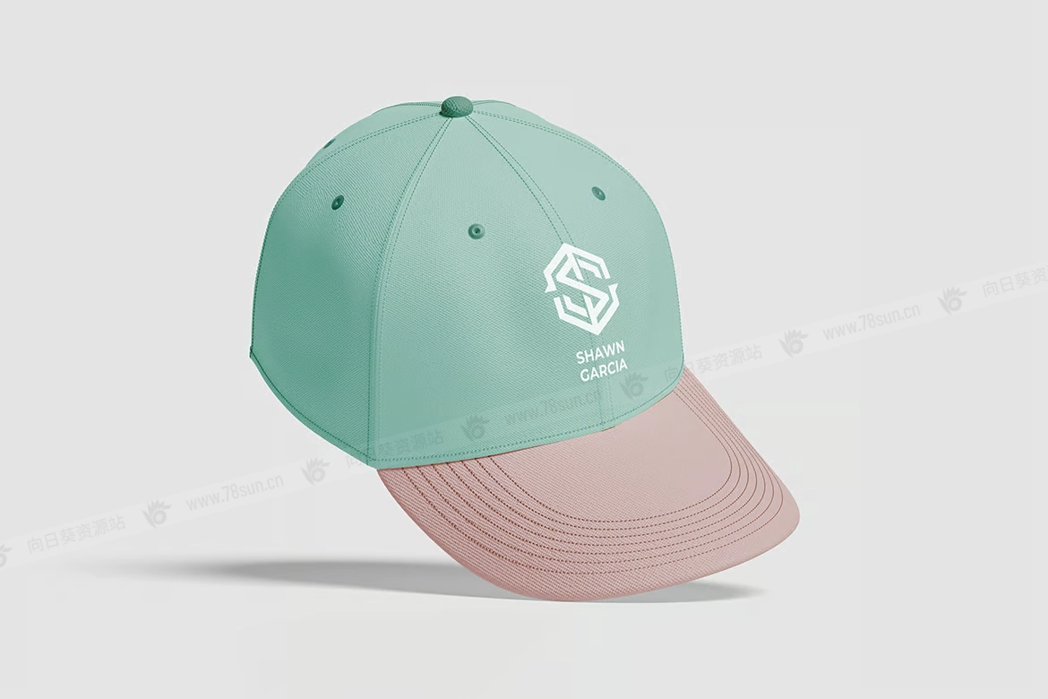 帽檐棒球帽子品牌VI效果图展示智能贴图psd设计样机。这是 Photoshop 文件、分层和智能对象功能,可帮助您轻松更改设计。