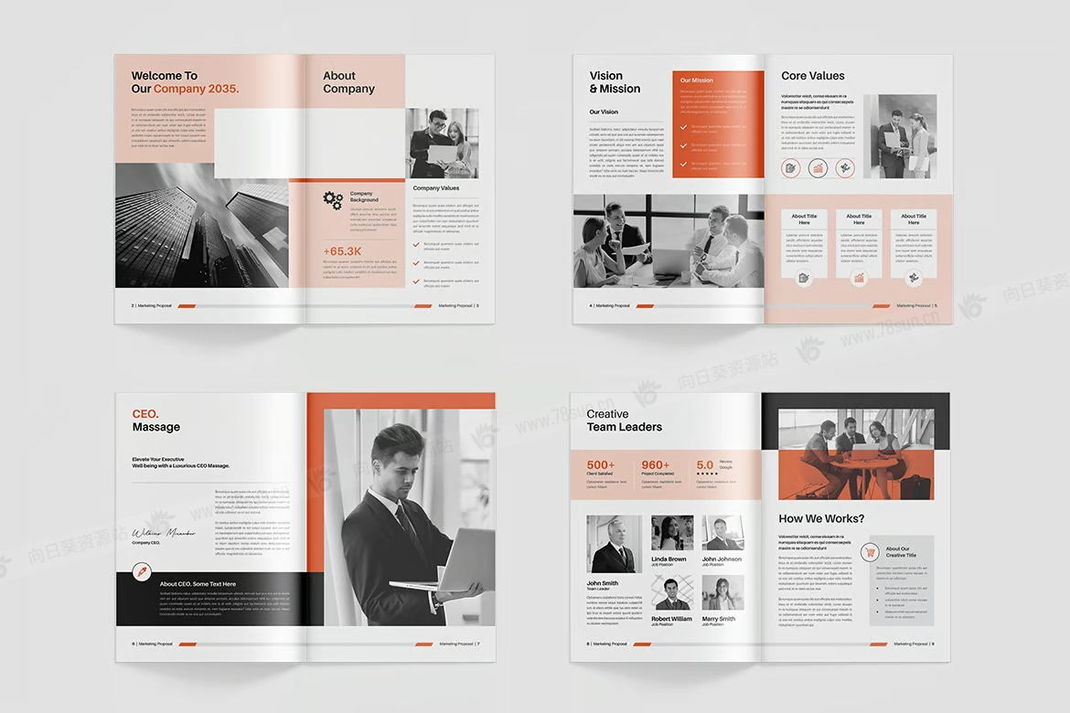 公司简介项目提案小册子杂志宣传册画册indd pdf设计模板,兼容 A4 和 US Letter 尺寸,适合任何行业。自定义颜色、添加徽标并插入图像以与您的品牌保持一致。