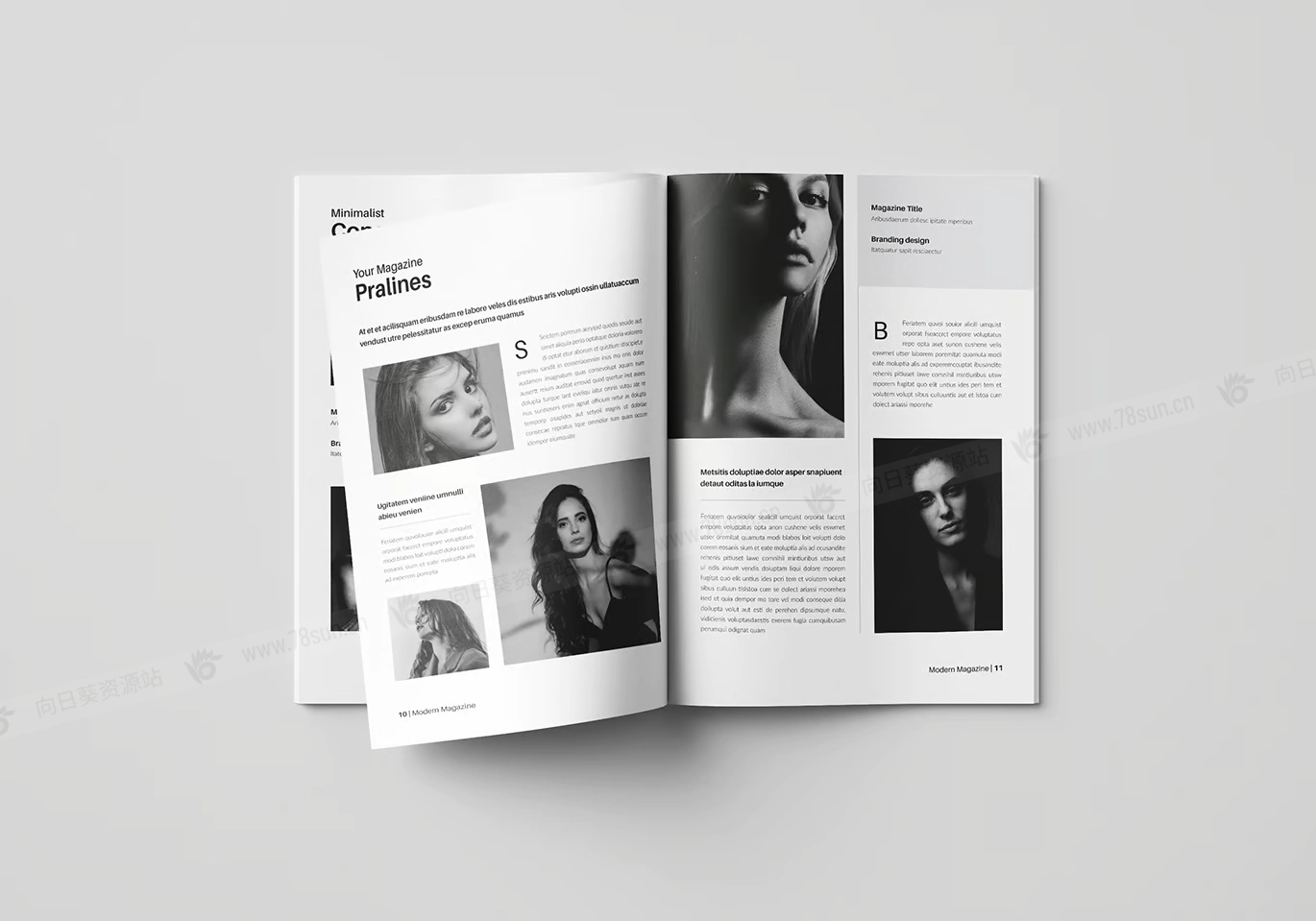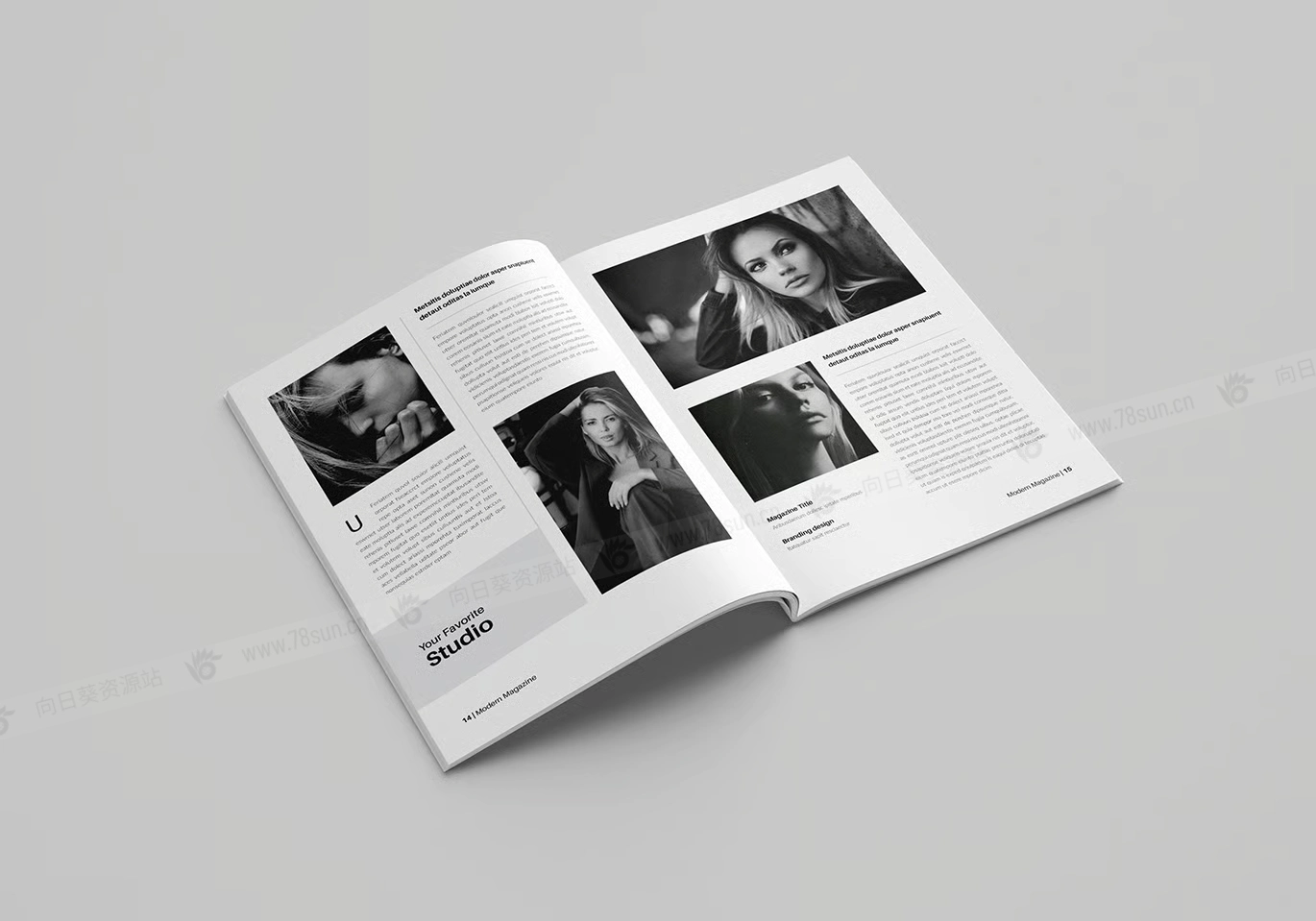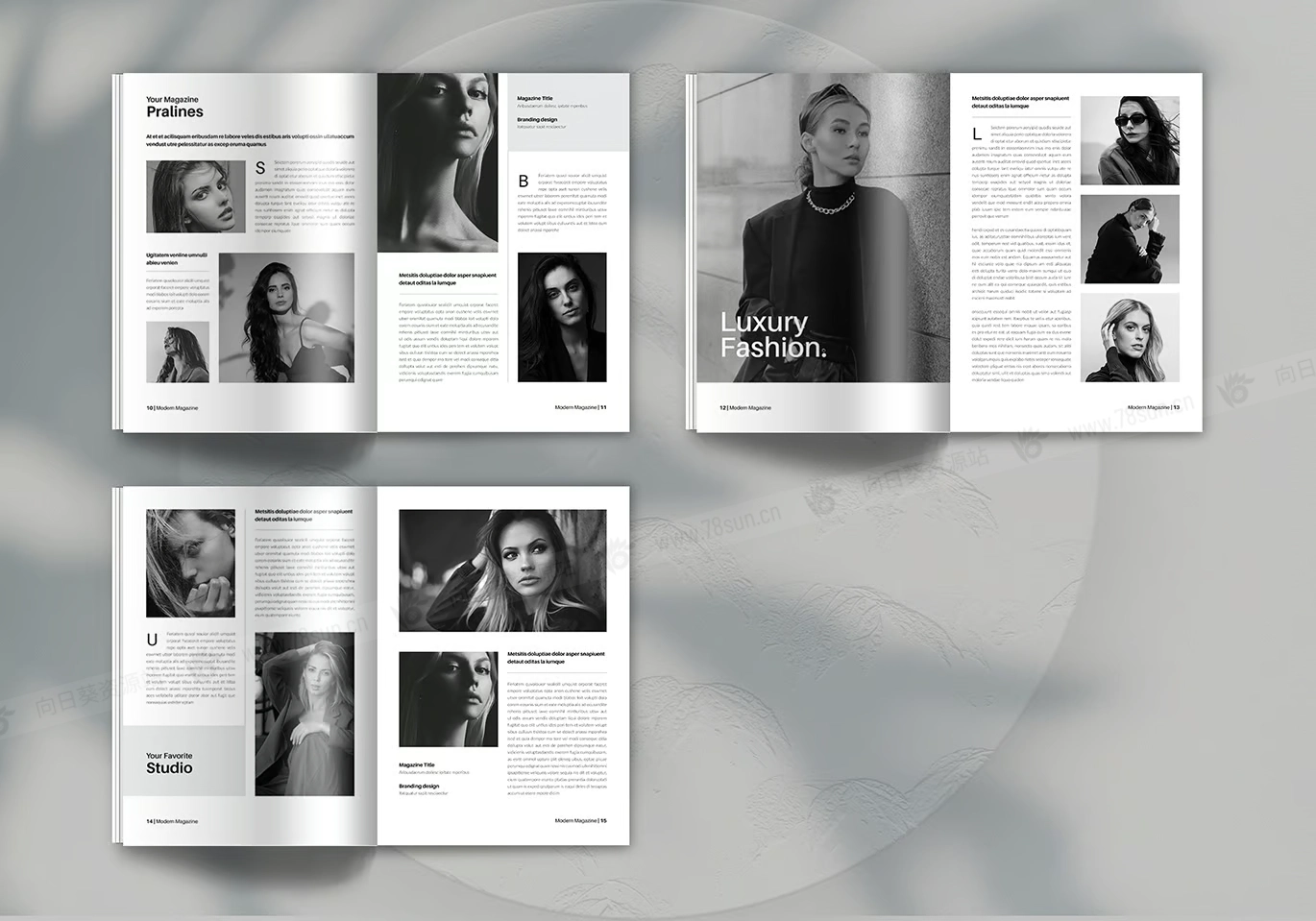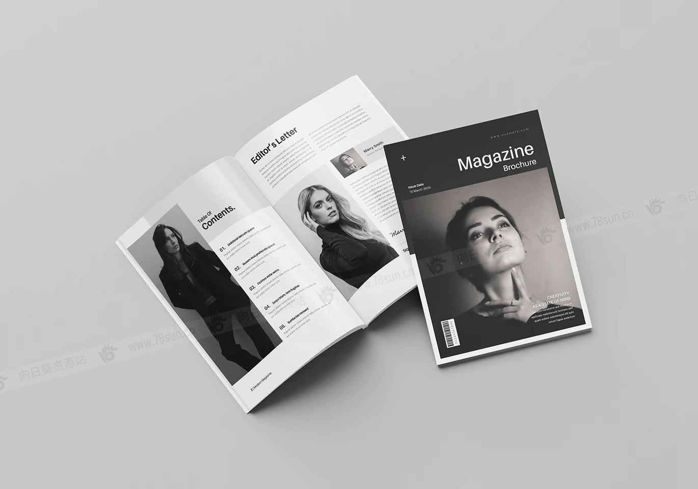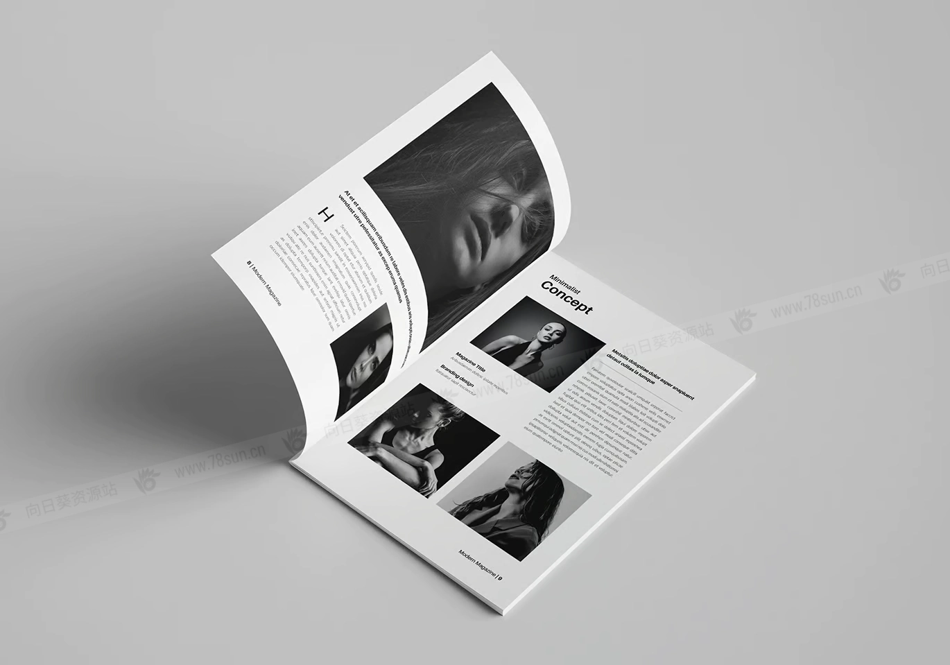 时尚摄影作品集小册子杂志宣传册画册indd设计模板。这种布局适合任何项目目的,非常易于使用和定制。很容易自定义它并用您自己的颜色替换徽标和品牌颜色,(它有 A4 和美国信纸两种尺寸可供选择)