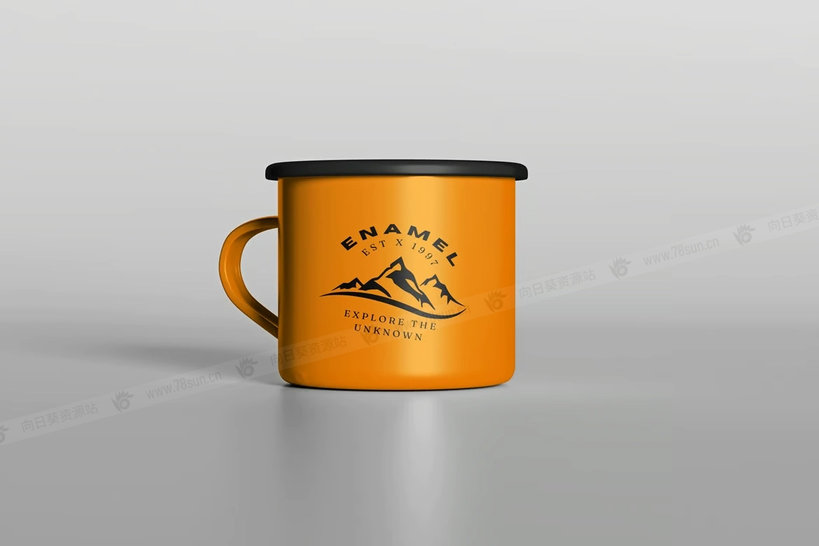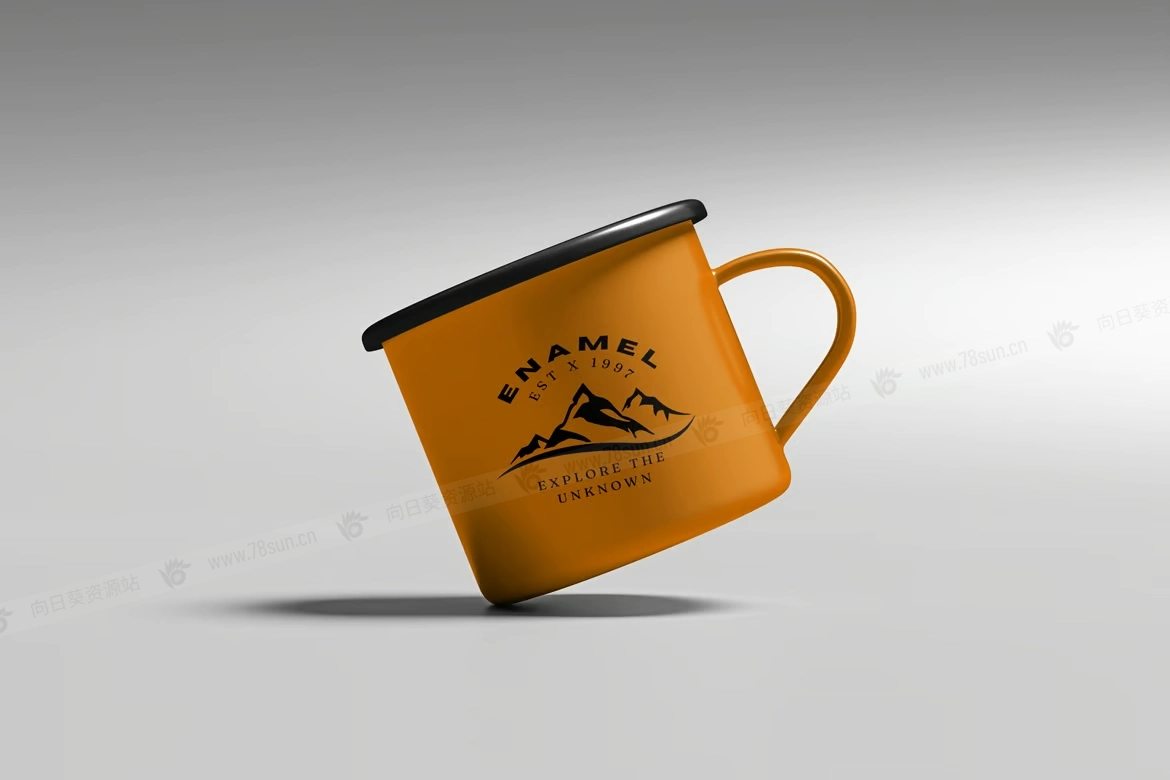 搪瓷马克杯品牌VI效果图展示智能贴图psd设计样机。此模型包括 4 个具有分层良好 PSD 文件,并且此模型还使用智能对象功能,这意味着您可以在几秒钟内轻松快速地使用自己的设计更改当前设计。