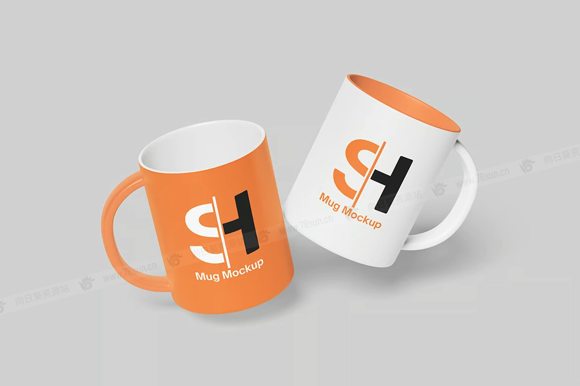 陶瓷马克杯品牌VI效果图展示智能贴图psd设计样机。这是一个分层的 Photoshop 文件,具有智能对象功能,可轻松编辑设计。
