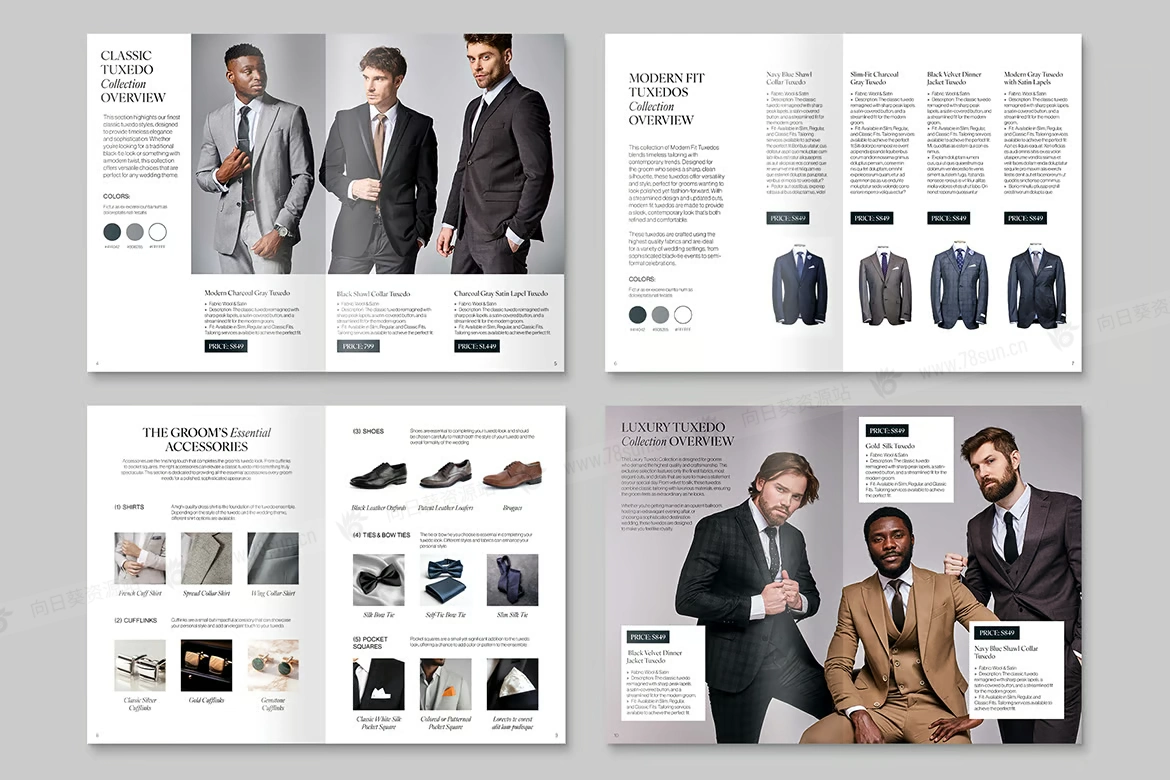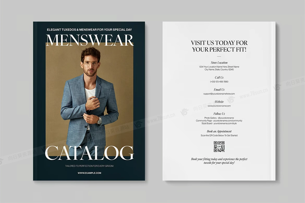 时尚男装服装目录小册子杂志宣传册画册indd设计模板。此模板提供 Canva 和 InDesign 格式(IDML、INDD),适合创建服装小册子、时尚杂志或产品目录的设计师。