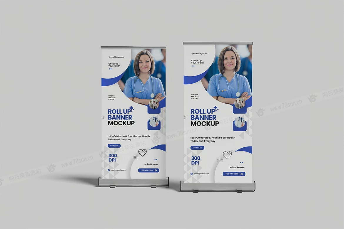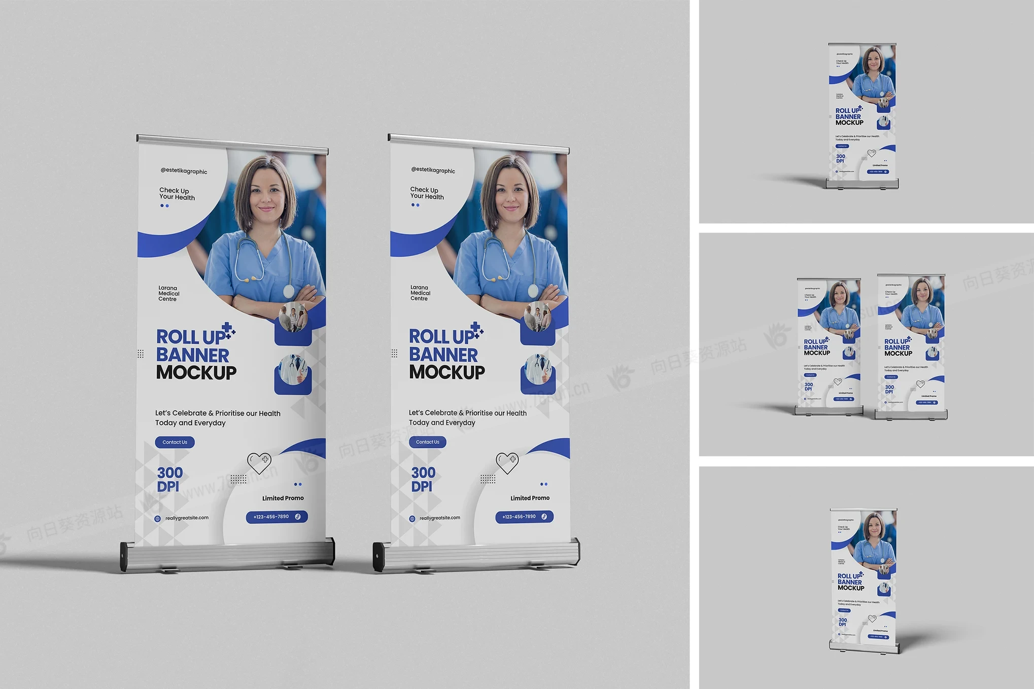 展架易拉宝VI效果图展示智能贴图psd设计样机。这些模型文件使用智能对象功能,可帮助您在几秒钟内更改设计,即使对于 Photoshop 的初学者也易于使用。