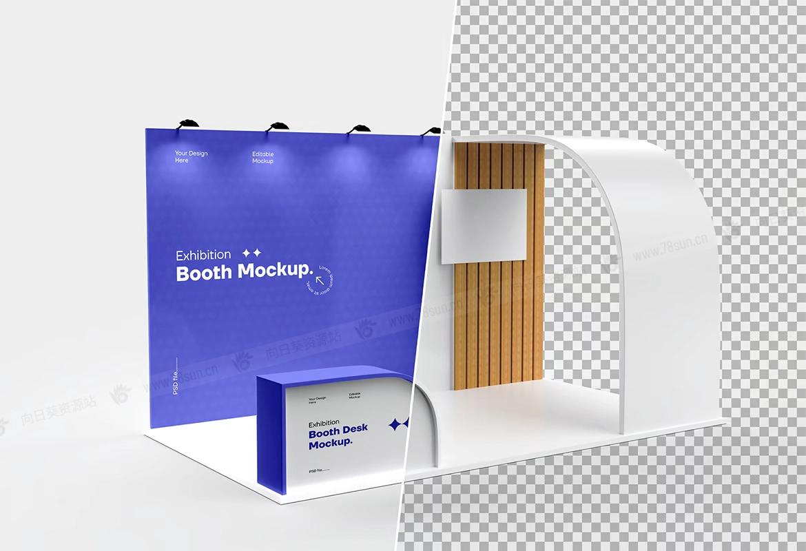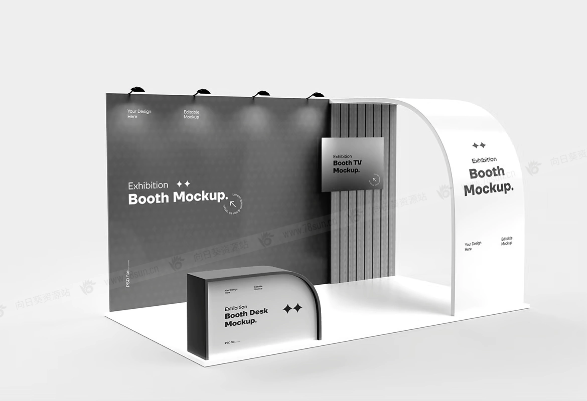 活动展台展位摊位背景板套装VI效果图展示智能贴图psd设计样机,