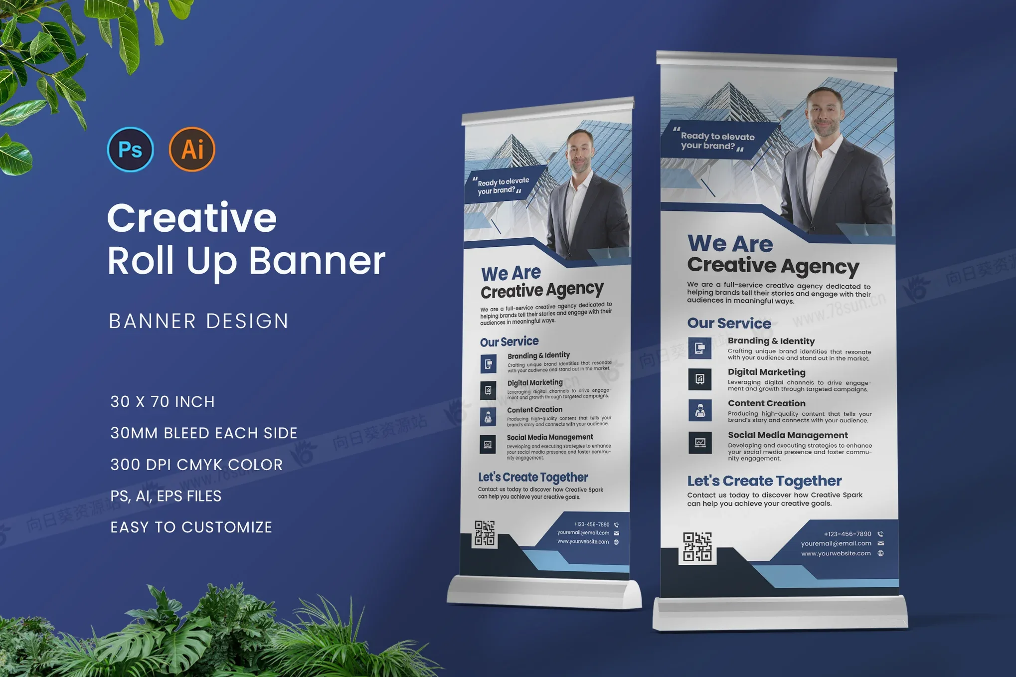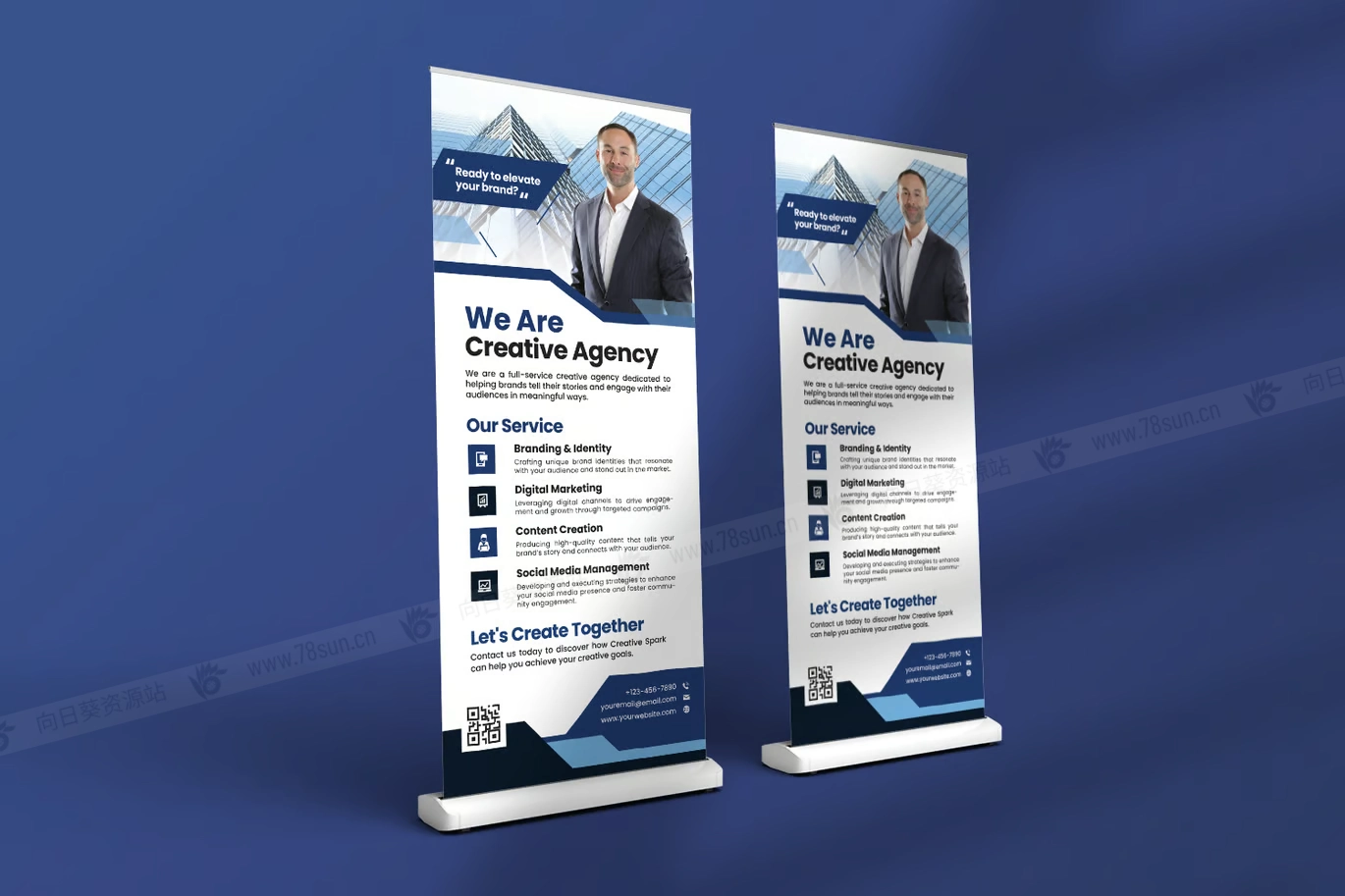 商务公司简介宣传活动展架易拉宝psd ai设计模板。非常易于使用和可编辑。