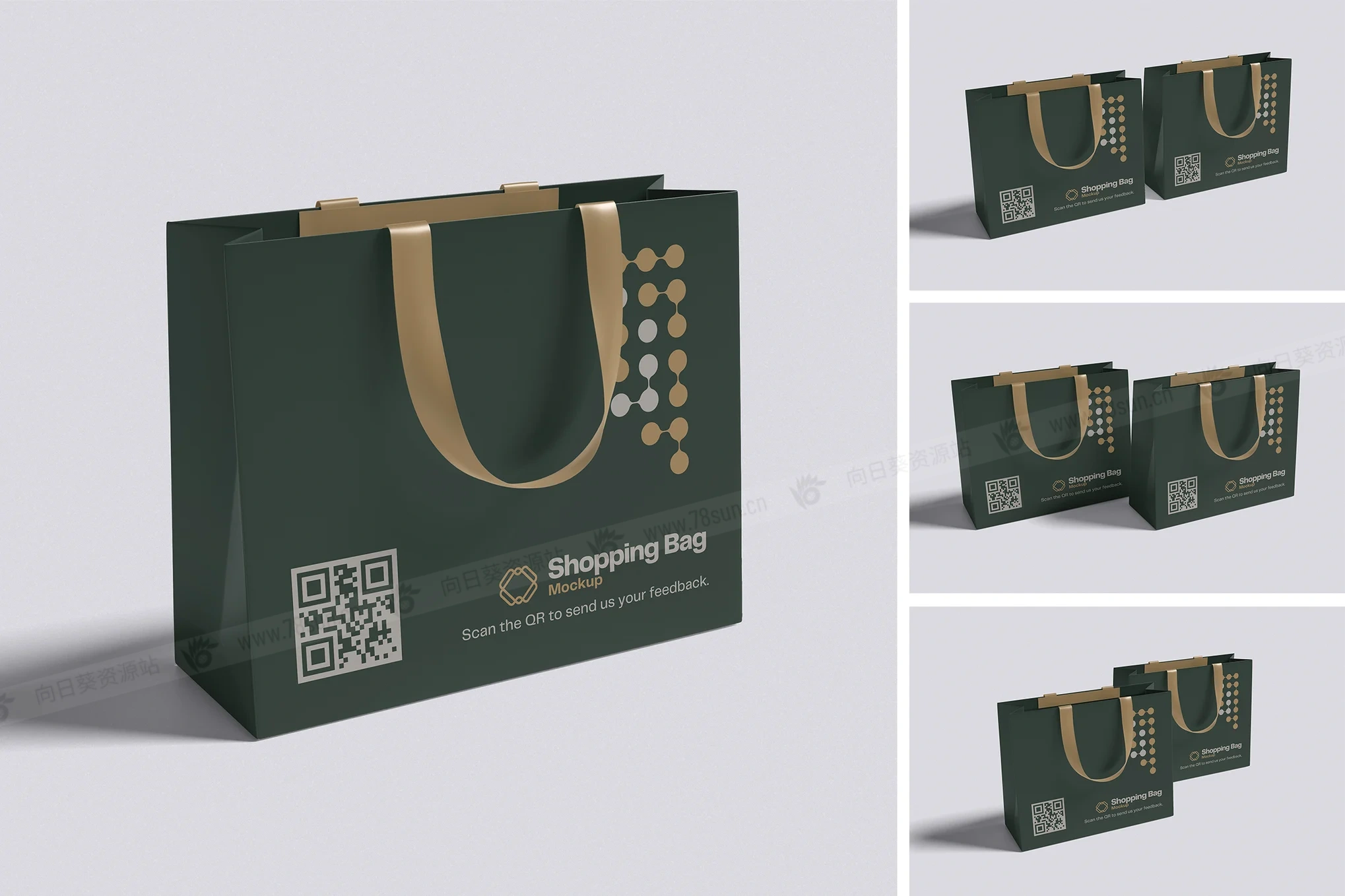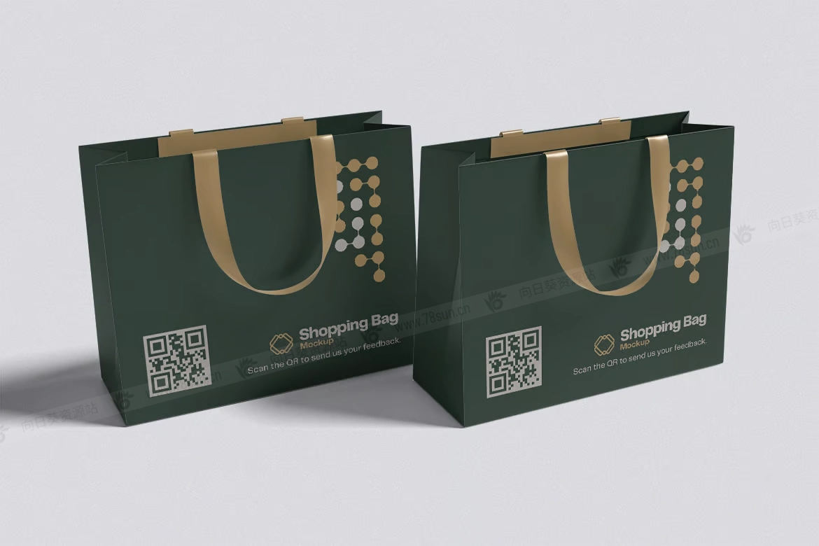 纸质手提袋购物袋品牌VI效果图展示智能贴图psd设计样机。此模型包括 4 个具有分层 PSD 文件,并且此模型还使用智能对象功能,这意味着您可以在几秒钟内轻松快速地使用自己的设计更改当前设计。