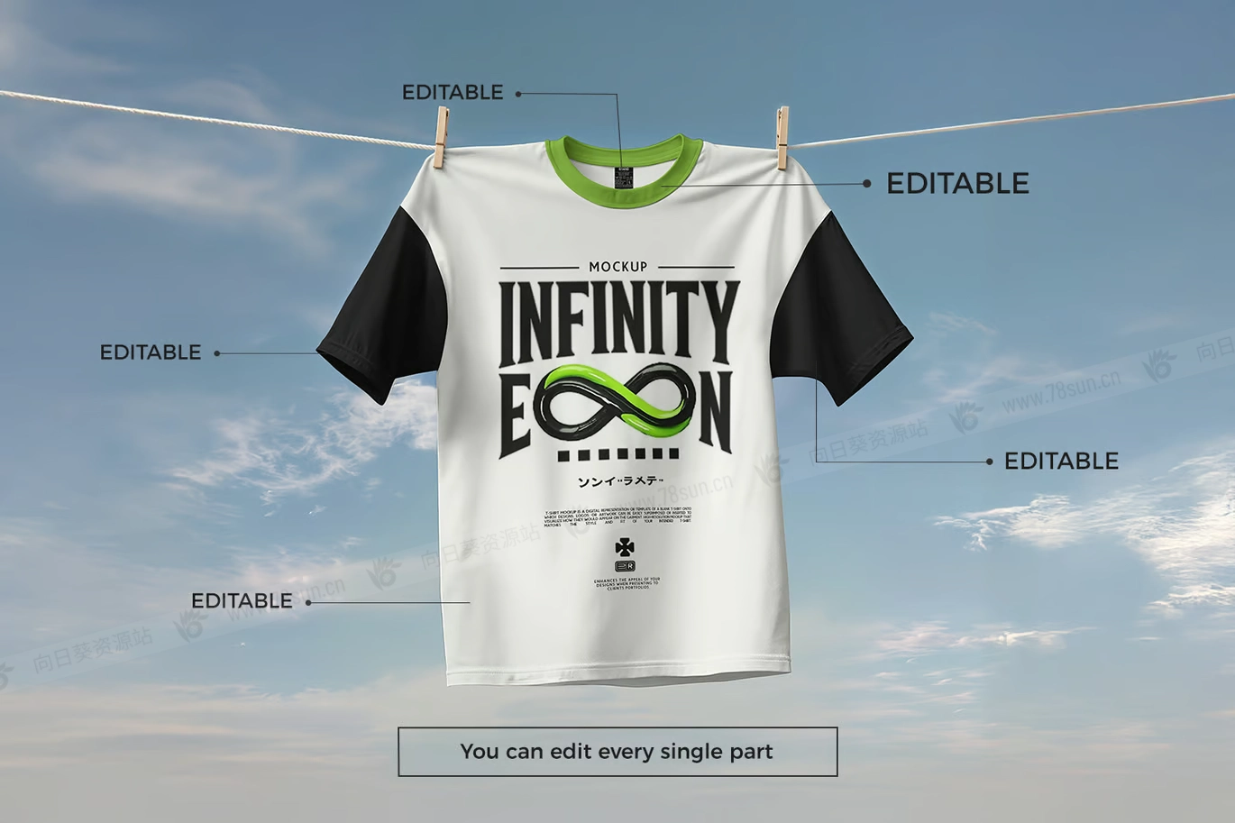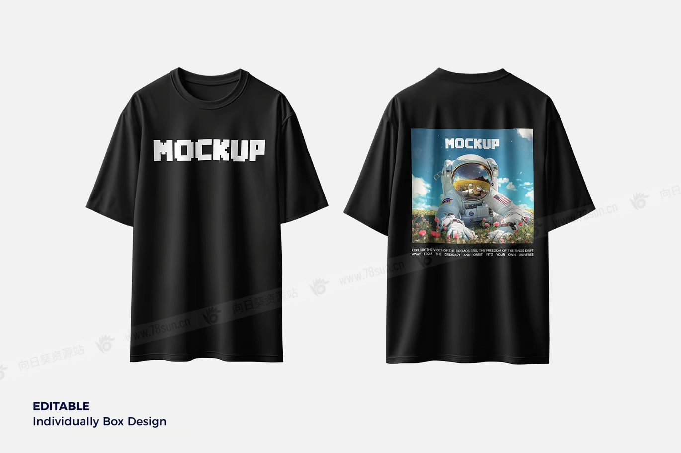 圆领短袖T恤品牌VI效果图展示智能贴图psd设计样机,