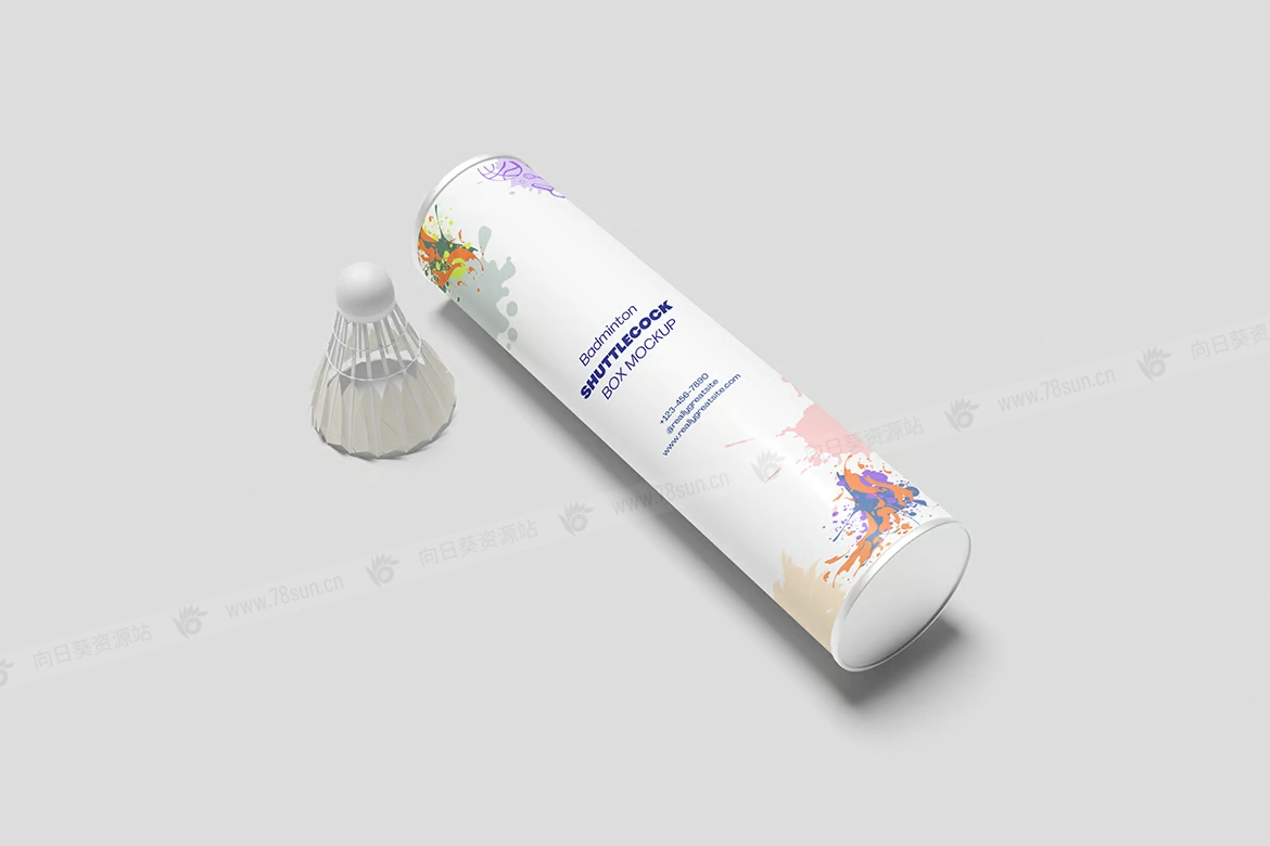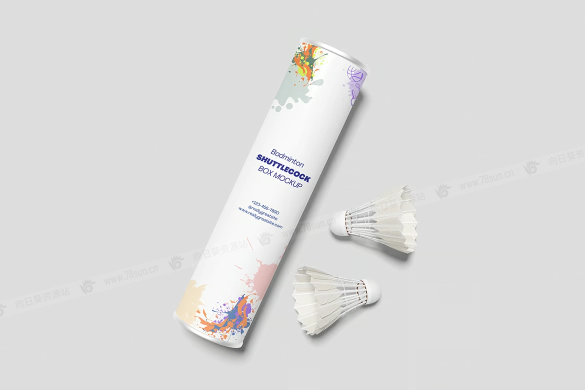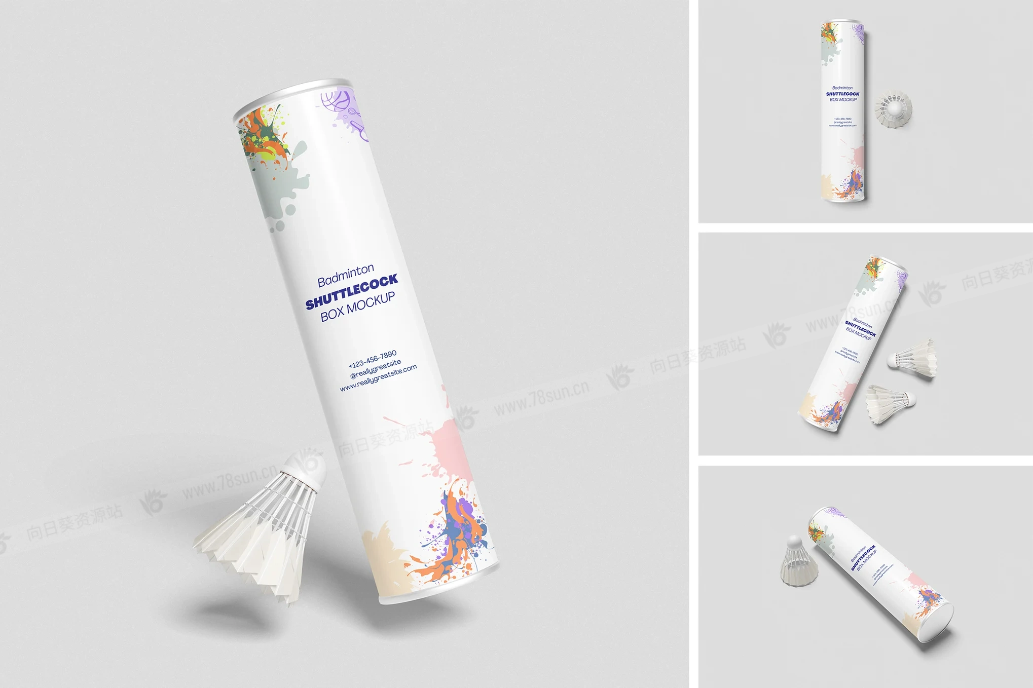 羽毛球盒羽毛球管品牌VI效果图展示智能贴图psd设计样机。这个模型包括 4 个,具有分层良好的 PSD 文件,并且这个模型还使用了智能对象功能,这意味着您可以在几秒钟内轻松快速地使用自己的设计更改当前设计。
