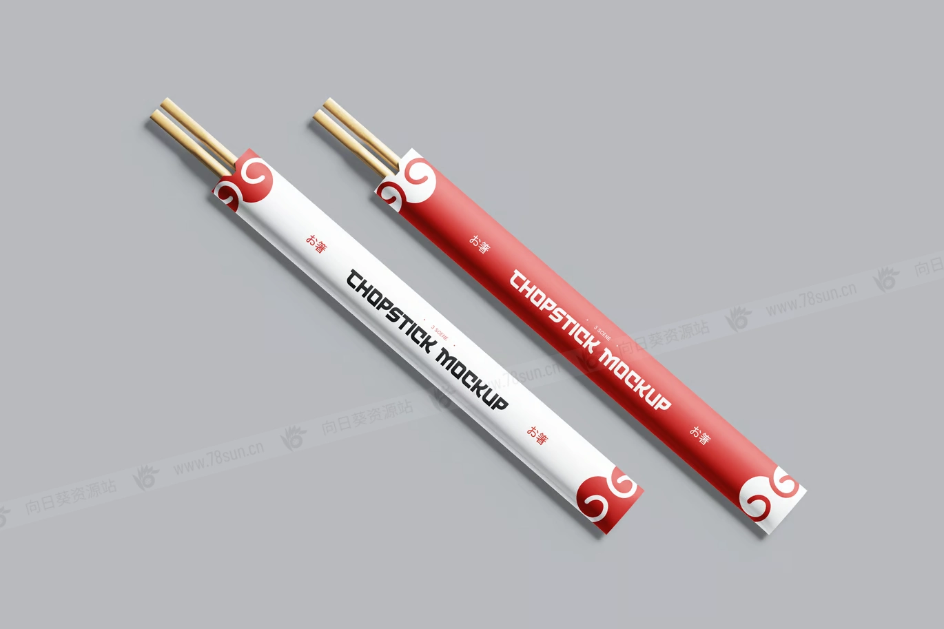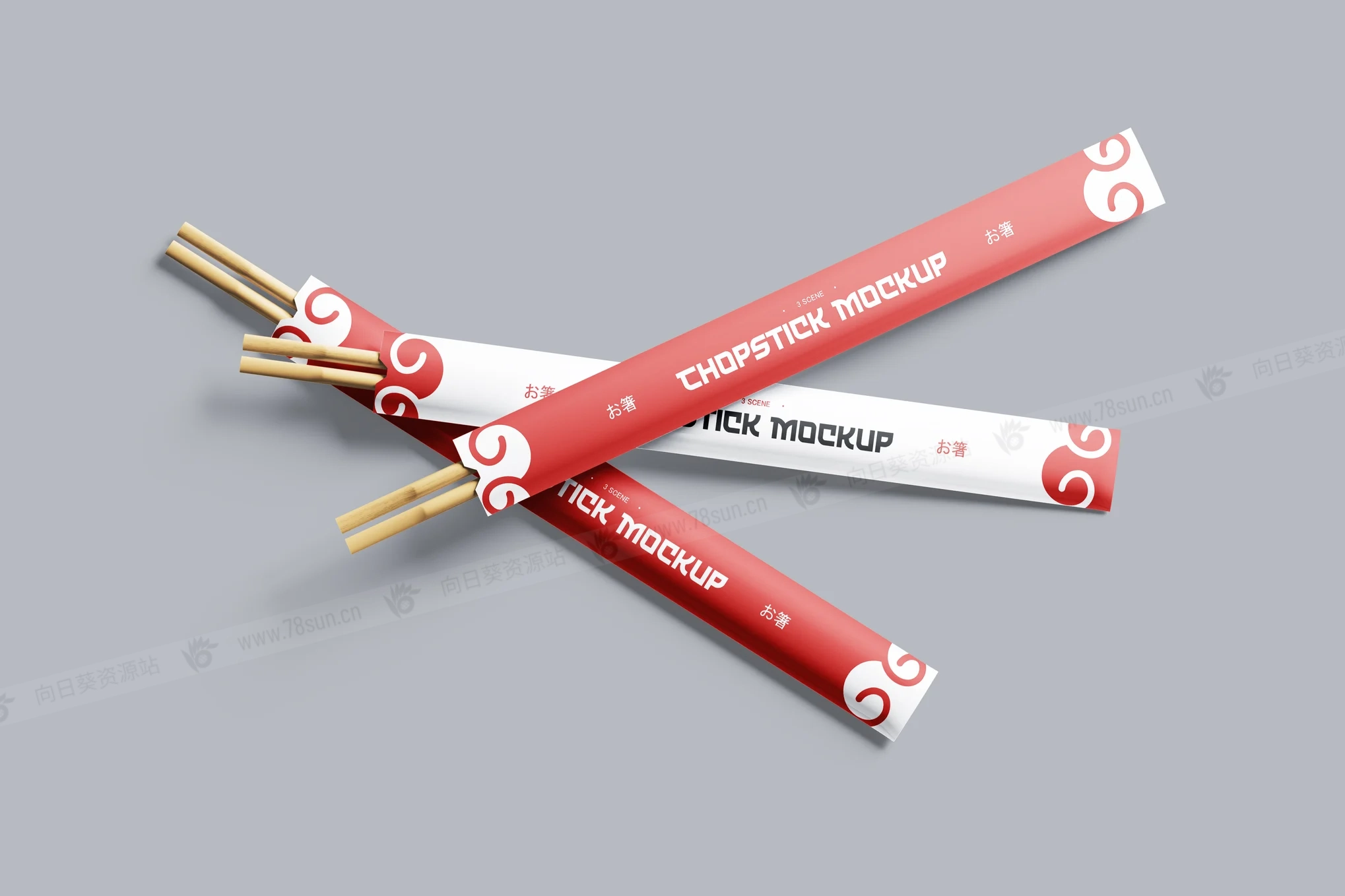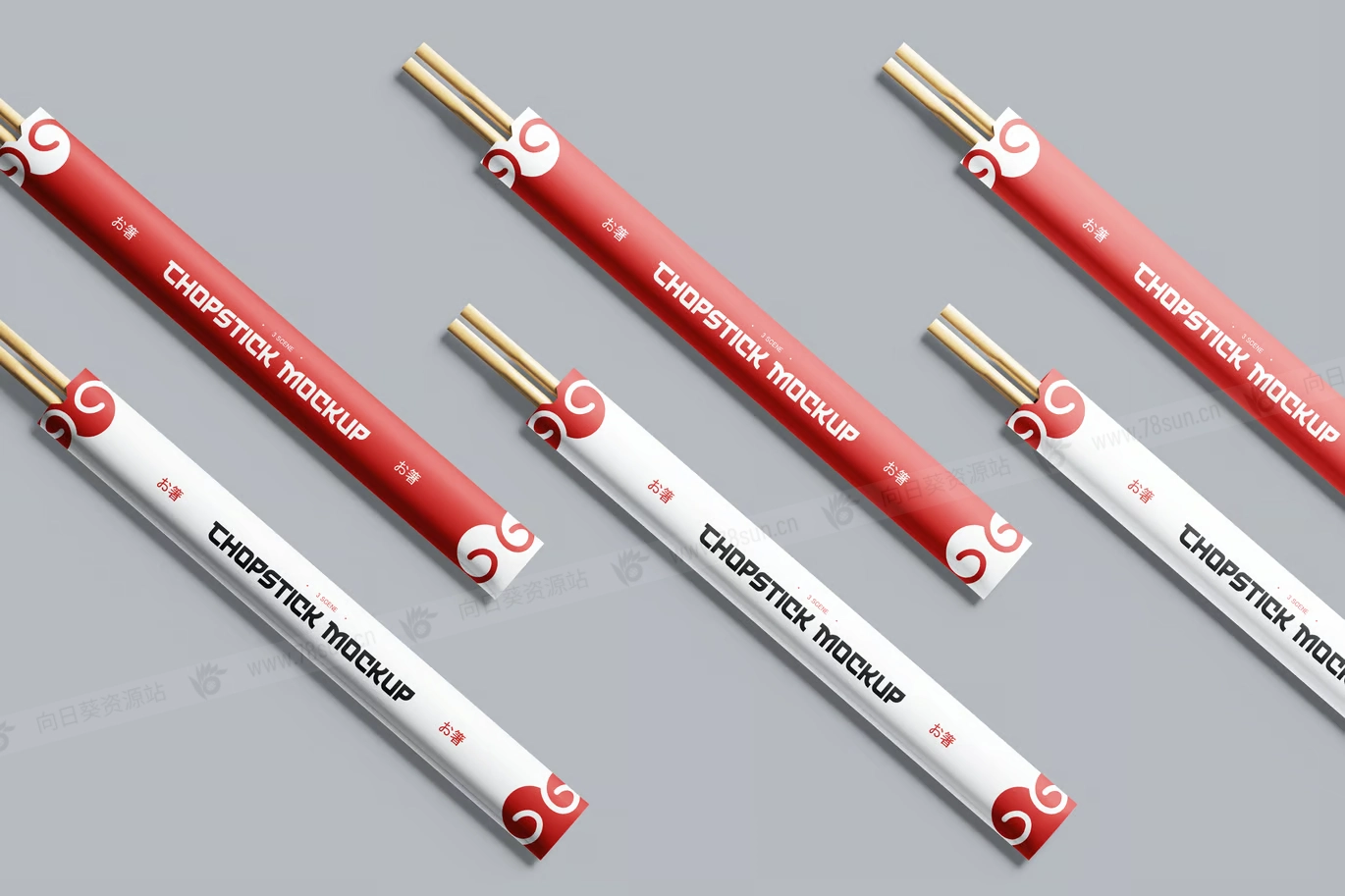 筷子包装纸袋品牌VI效果图展示智能贴图psd设计样机,提供逼真的、可定制的设计,非常适合以高分辨率展示您的想法,