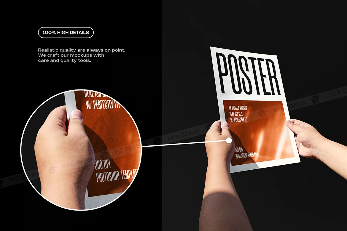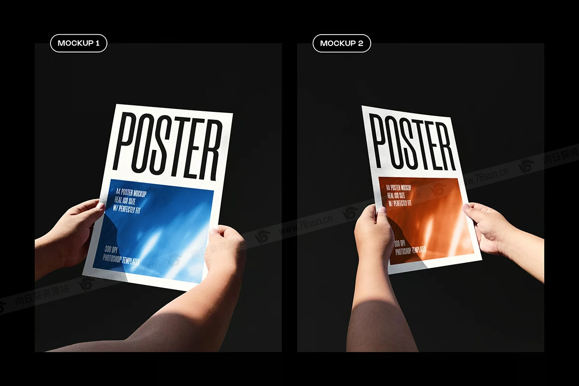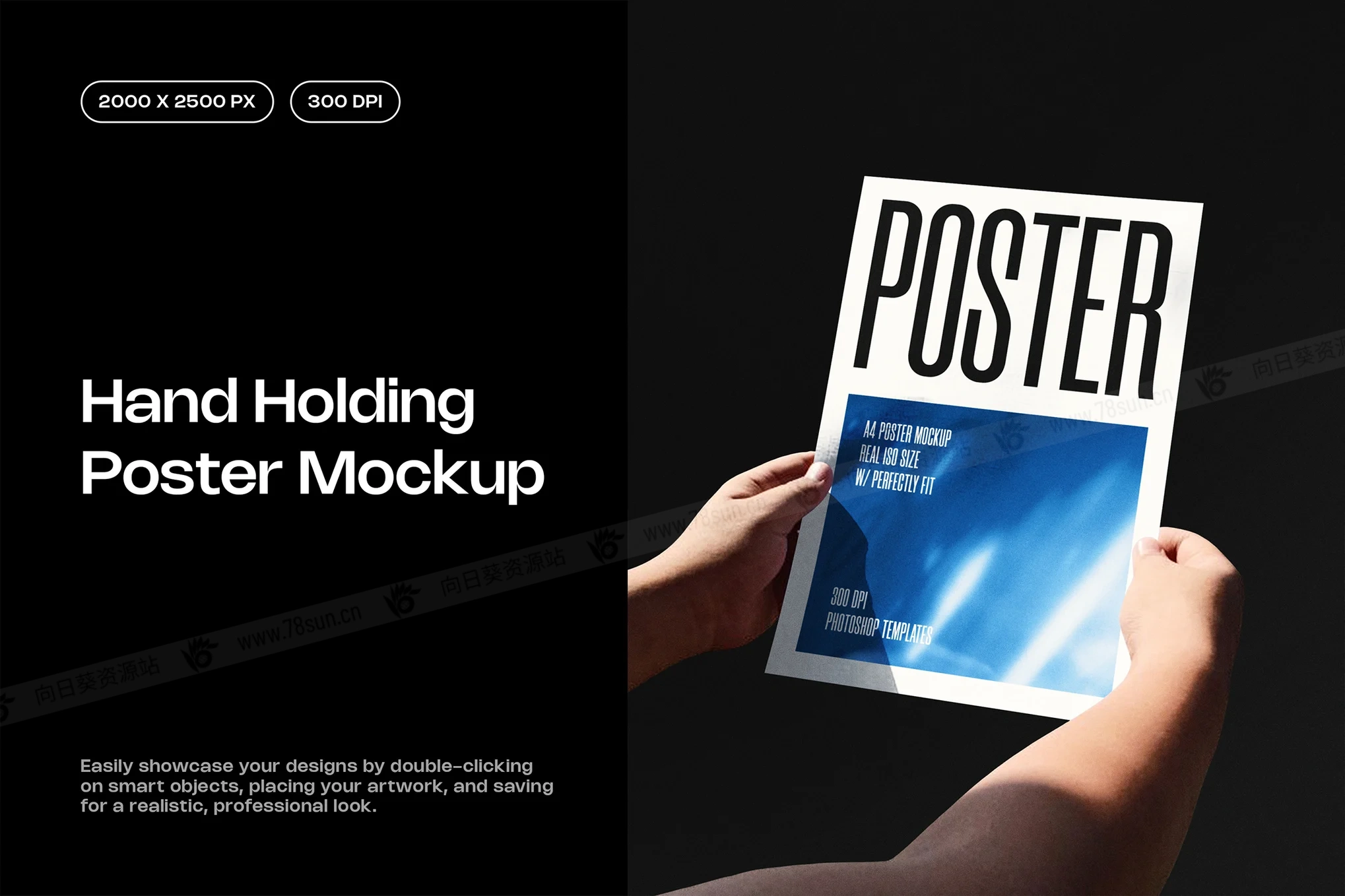 手持海报广告宣传单VI效果图展示智能贴图psd设计样机模型(2000×2500 像素)以逼真的方式展示您的海报设计。它具有智能对象图层、高细节户外摄影和自然的人体元素,非常适合以相关和专业的方式宣传活动海报、艺术品或活动。