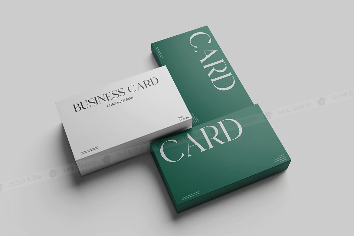 名片商业卡片VI效果图展示智能贴图psd设计样机。这是 Photoshop 文件,在智能对象功能中分层和可编辑的设计。编辑和节省时间很容易。只需双击智能对象的图层缩略图,它就会打开新文档,然后将您的设计粘贴到其中并保存。