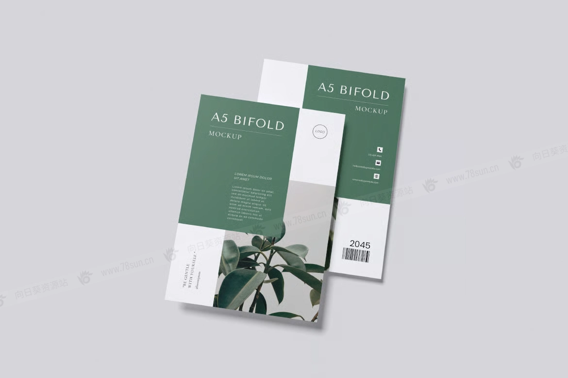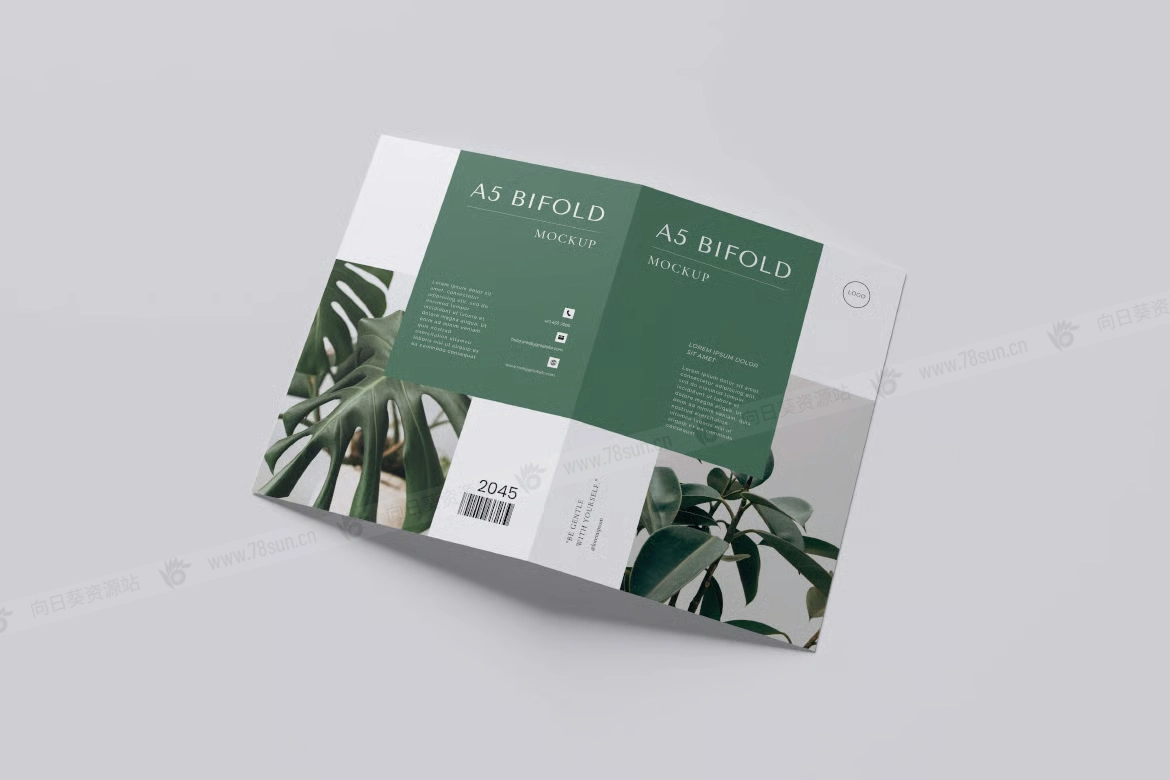 A5双折页宣传册小册子VI效果图展示智能贴图psd设计样机,此模型包括 04 个具有分层良好 PSD 文件,并且此模型还使用智能对象功能,这意味着您可以在几秒钟内轻松快速地使用自己的设计更改当前设计。