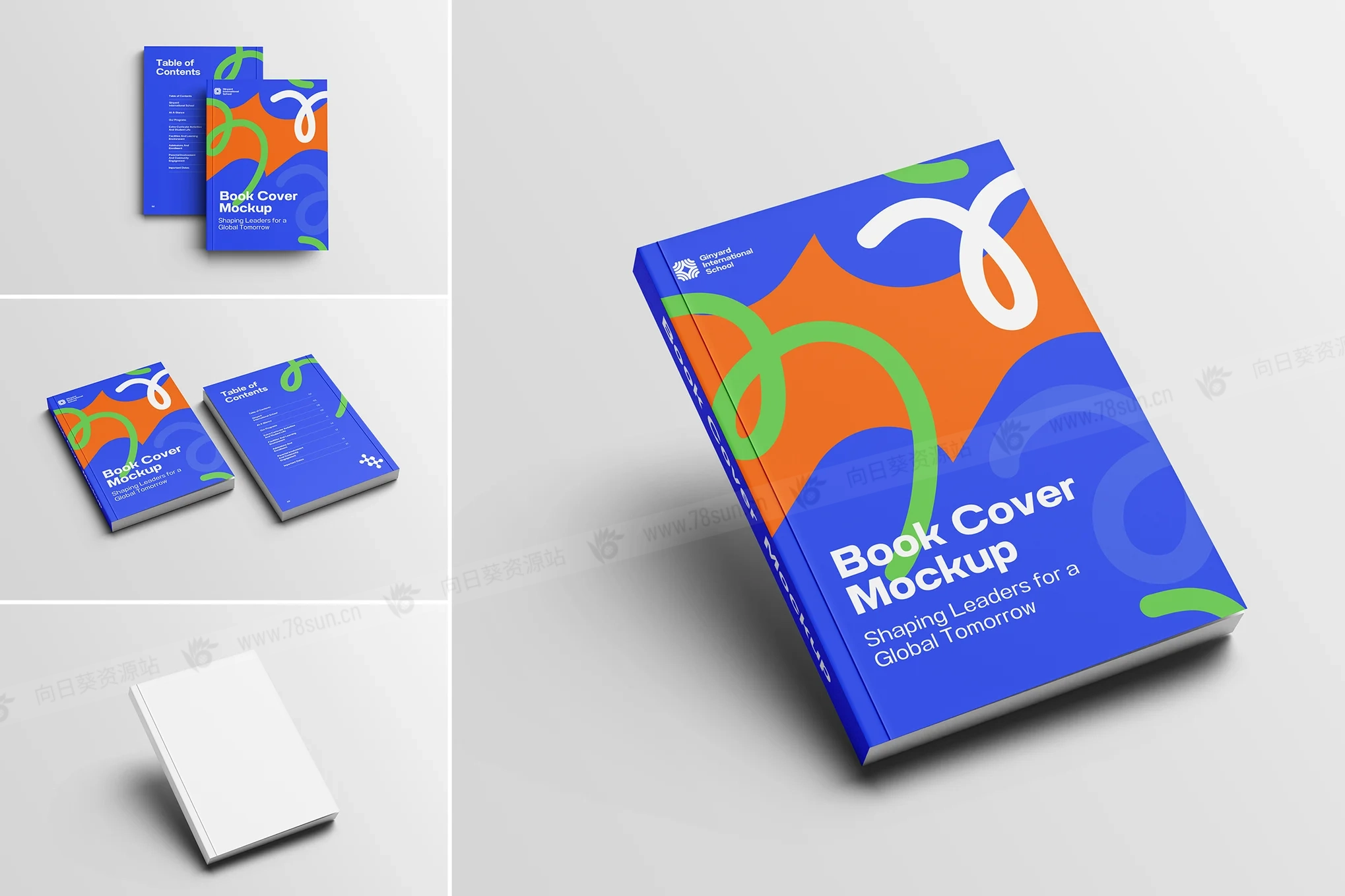 书籍杂志封面VI效果图展示智能贴图psd设计样机。这个模型包括 03 个具有分层良好的 PSD 文件,并且这个模型还使用了智能对象功能,这意味着您可以在几秒钟内轻松快速地使用您的设计更改当前设计。