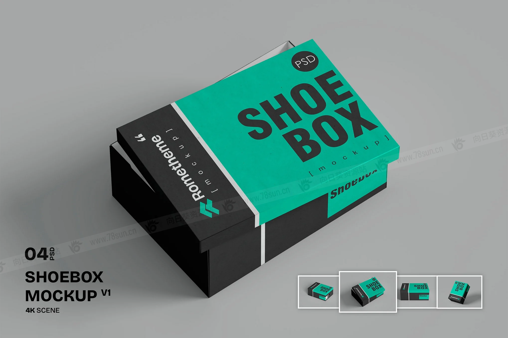 鞋子包装纸盒品牌VI效果图展示智能贴图psd设计样机,使用这款完全可编辑的模型 PSD 轻松以干净、逼真和专业的方式展示您的产品设计。无论您是展示包装、标签、品牌元素还是产品概念,此模型都能为您的设计提供应有的精美设计。