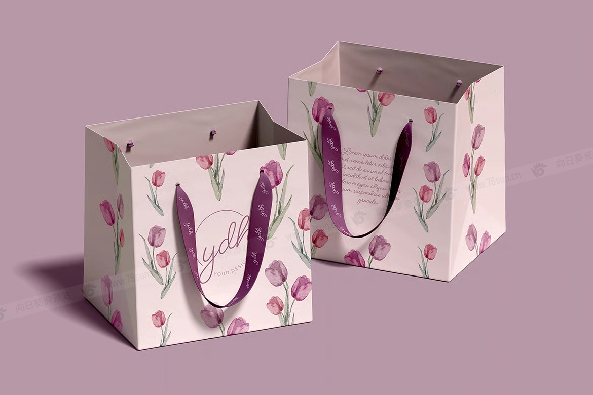 纸质手提袋购物袋品牌VI效果图展示智能贴图psd设计样机。将设计替换为您的图稿,即可在几秒钟内获得逼真而优雅的结果。预览中使用的照片不包括在内。