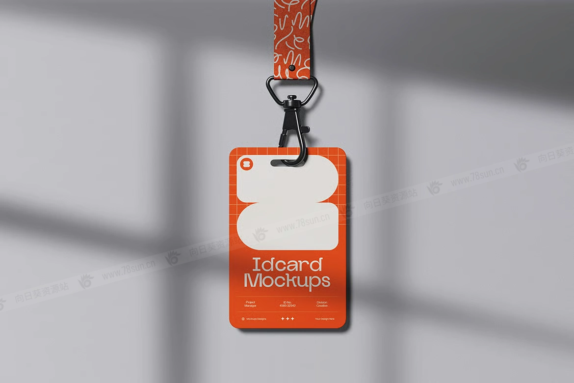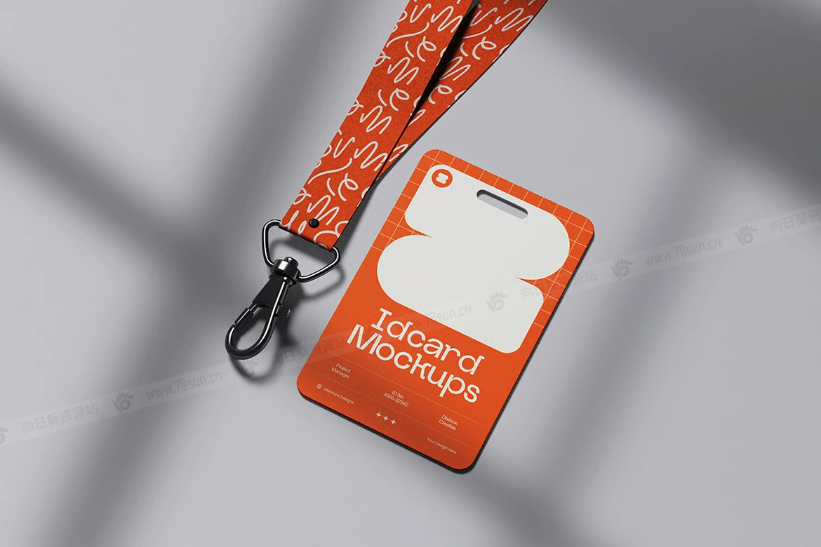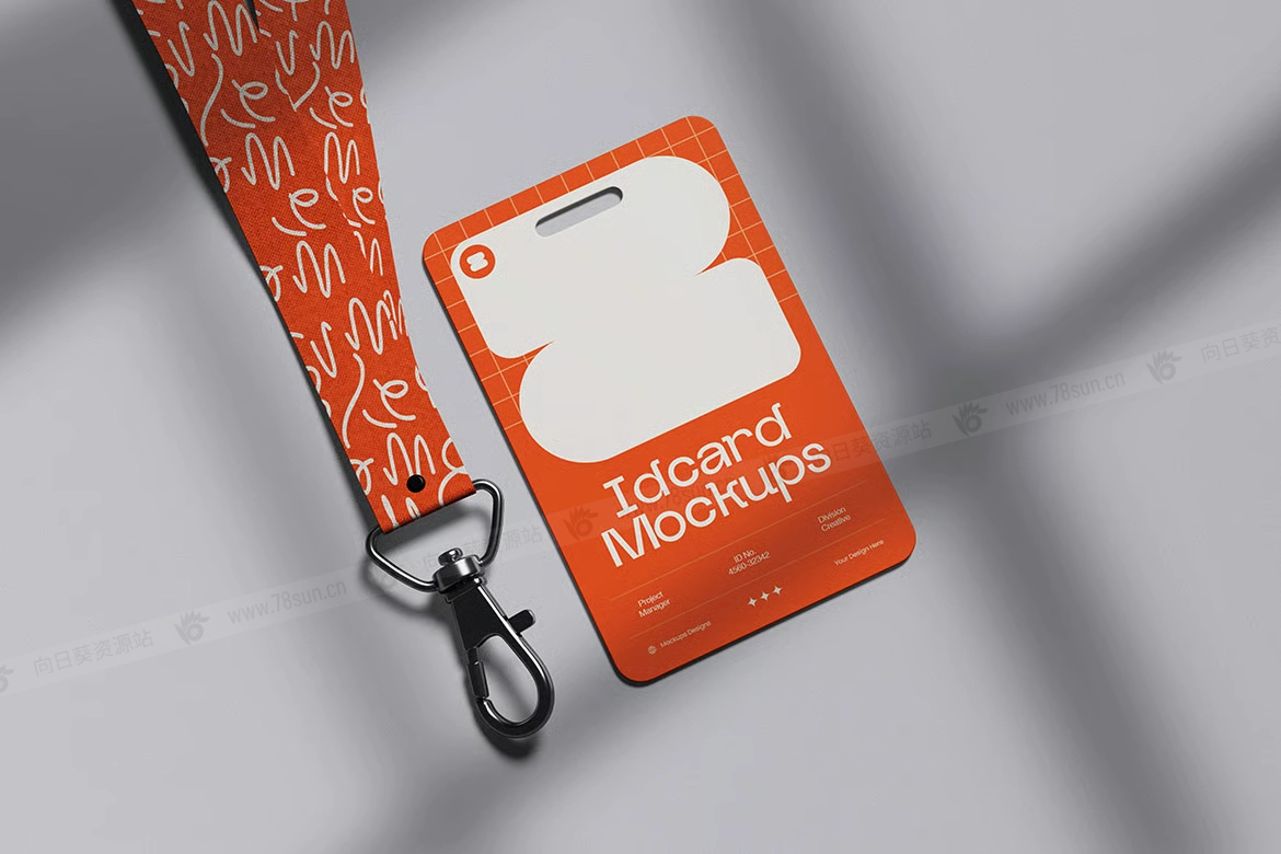 工作证工卡ID卡挂绳VI效果图展示智能贴图psd设计样机,此模型包括 4 个具有分层良好 PSD 文件,并且此模型还使用智能对象功能,这意味着您可以在几秒钟内轻松快速地使用自己的设计更改当前设计。