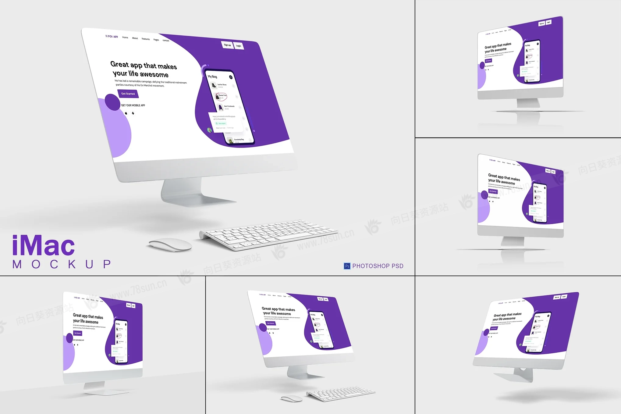 桌面iMac粘土电脑UI效果图展示智能贴图psd设计样机,使用智能对象功能轻松快速地替换设计。以 PSD Photoshop 格式提供,具有智能对象功能,可帮助您在几秒钟内将当前设计替换为自己的设计。