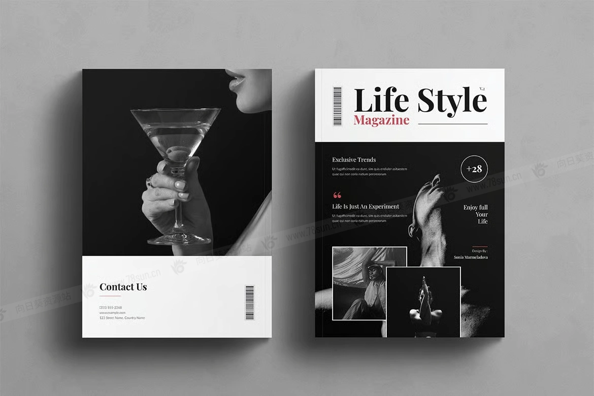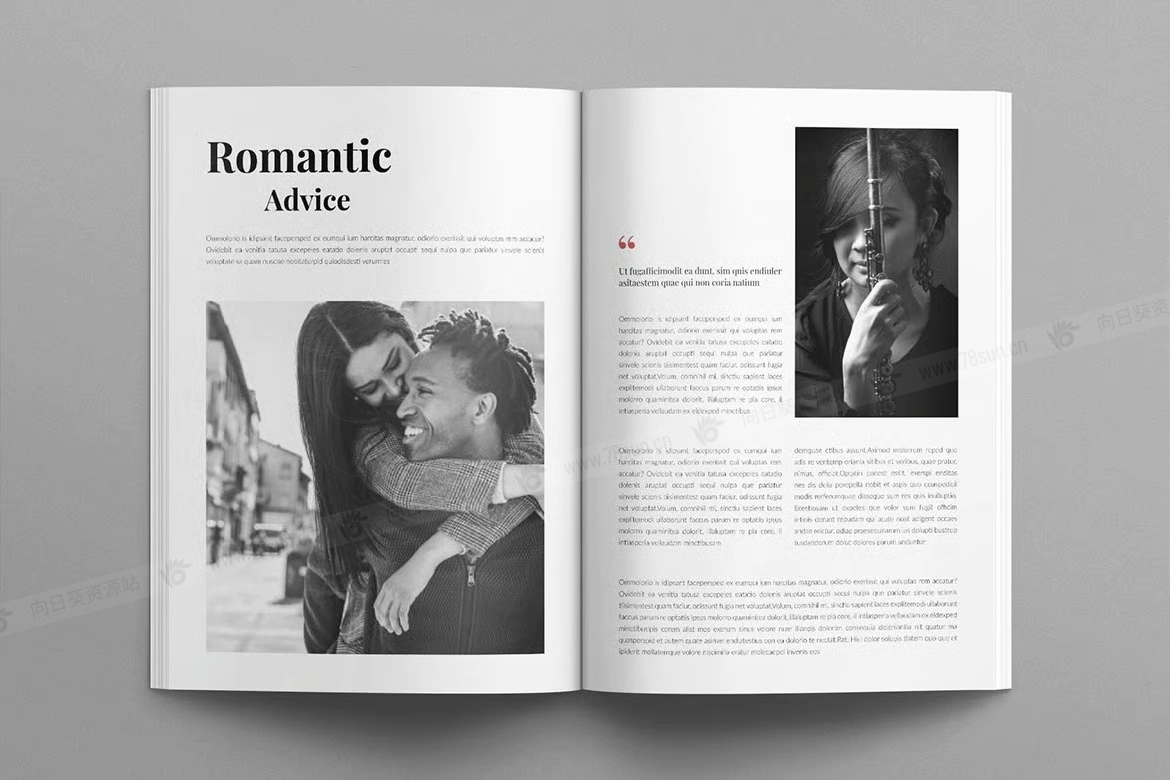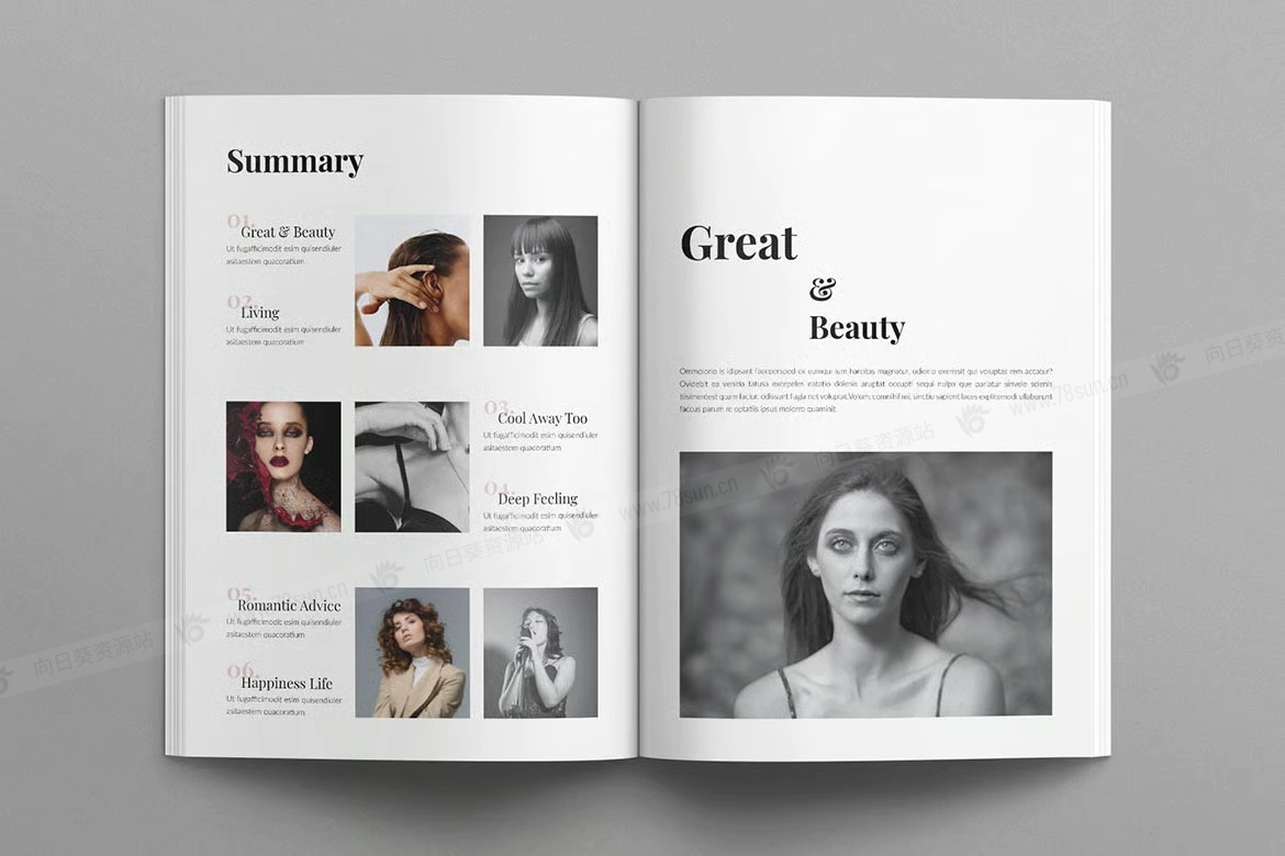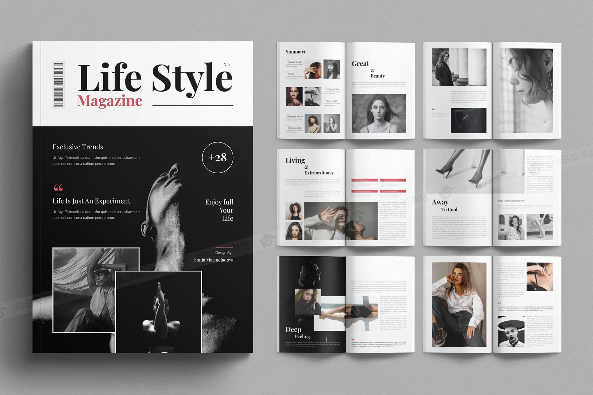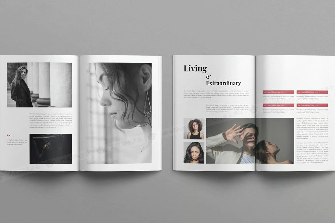 时尚生活摄影作品集小册子杂志宣传册画册indd设计模板,完全可编辑模板。模板有 2 种尺寸可供选择,国际 A4 和美国信纸。颜色模式为 CMYK。帮助文件中链接的免费字体。此模板中的所有元素都按层组织并与网格对齐。模板带有预制的中性调色板,但是您只需单击一下即可更改颜色以适应您的品牌调色板。