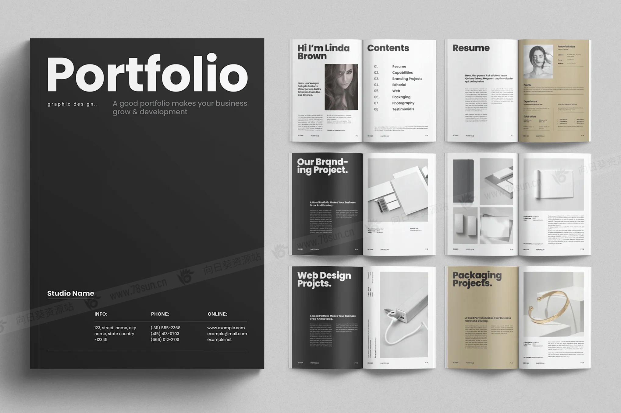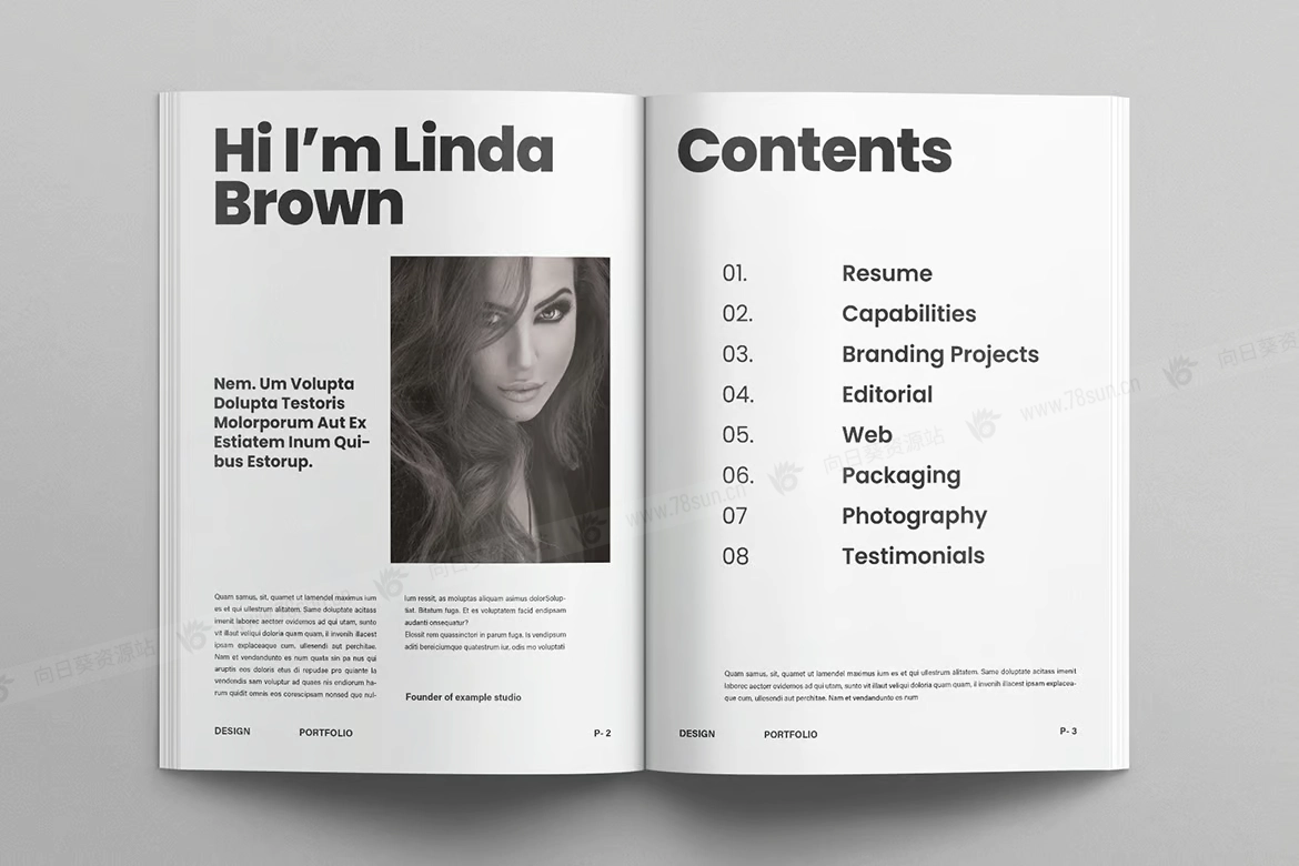 设计师摄影作品集小册子杂志宣传册画册indd设计模板,完全可编辑模板。模板有 2 种尺寸可供选择,国际 A4 和美国信纸。颜色模式为 CMYK。免费字体,这些字体在帮助文件中链接。此模板中的所有元素都按层组织并与网格对齐。模板带有预制的中性调色板,但是您只需单击一下即可更改颜色以适应您的品牌调色板。