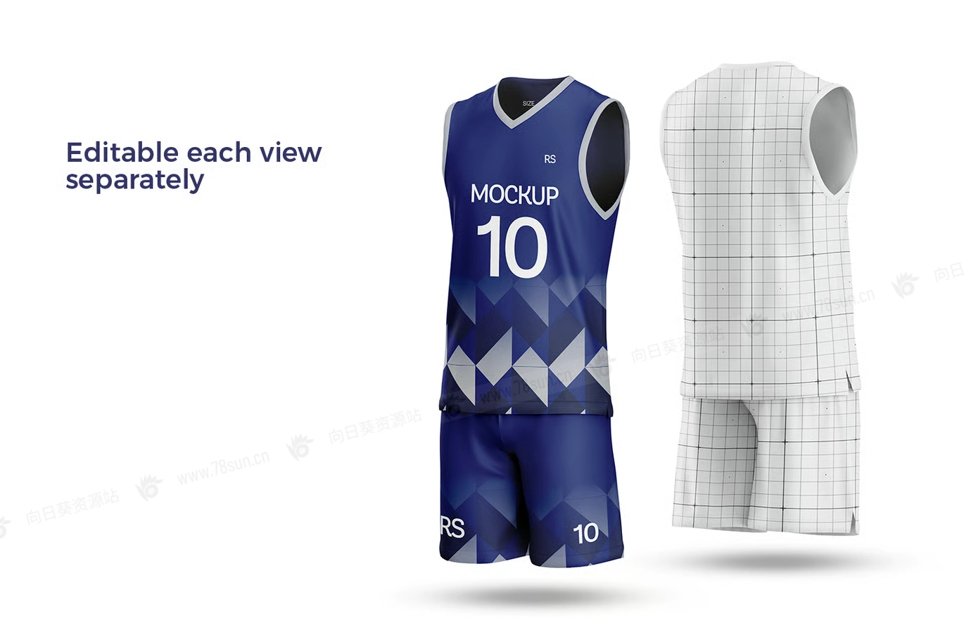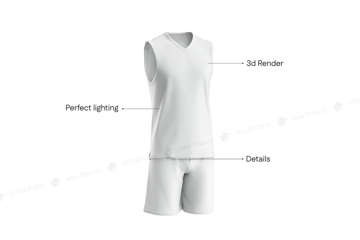 V领篮球衫短裤服装VI效果图展示智能贴图psd设计样机,非常适合展示球队制服、运动服设计或运动服装系列。它采用经典的 V 领无袖设计,非常适合篮球队、运动俱乐部、健身爱好者或运动品牌。该模型提供了一个完全可定制的表面,让您可以清晰准确地显示您的团队标志、球员编号、品牌名称或创意设计元素。其高分辨率渲染捕捉了优质运动面料的纹理,