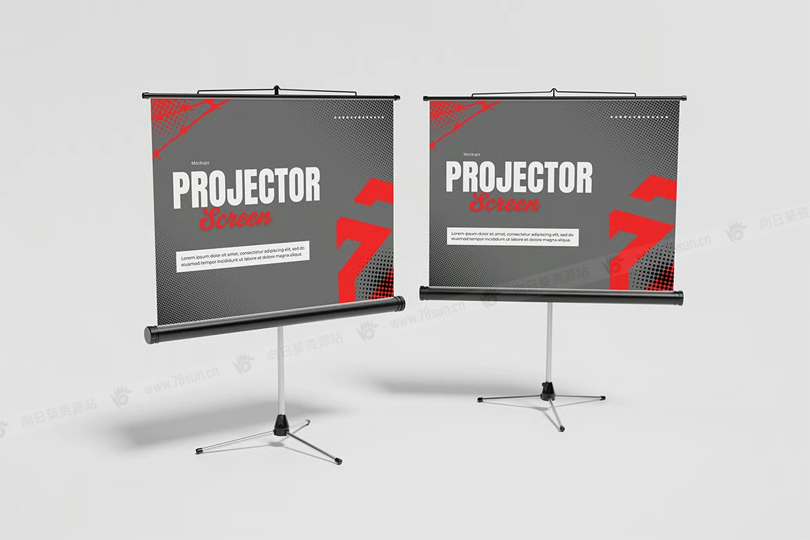 投影仪屏幕品牌VI效果图展示智能贴图psd设计样机。此模型包括 4 个具有分层 PSD 文件,并且此模型还使用智能对象功能,这意味着您可以在几秒钟内轻松快速地使用自己的设计更改当前设计。