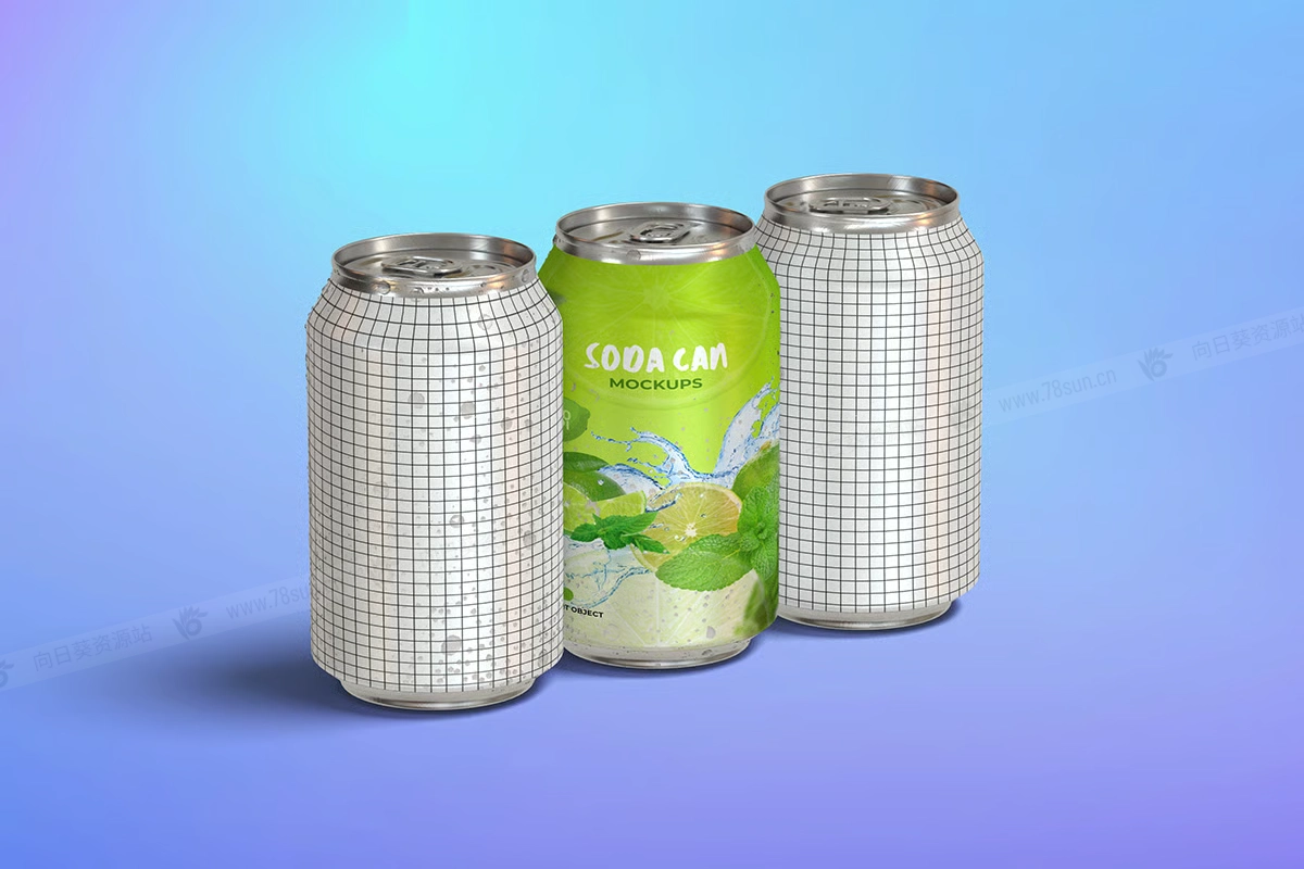 汽水饮料易拉罐头品牌VI效果图展示智能贴图psd设计样机。您可以在几秒钟内将当前设计替换为具有智能对象功能的 PSD Photoshop 格式的 PSD 设计。