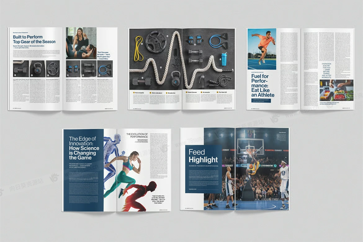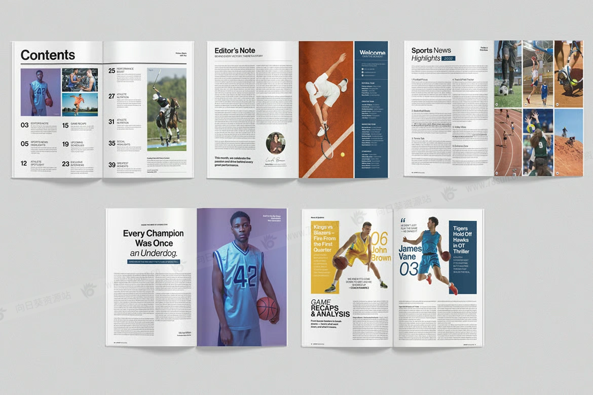 体育运动健身小册子杂志宣传册画册indd设计模板,非常适合为健身活动、自行车、足球、篮球和田径出版物,有 Canva 和 InDesign(IDML、INDD)格式可供选择。