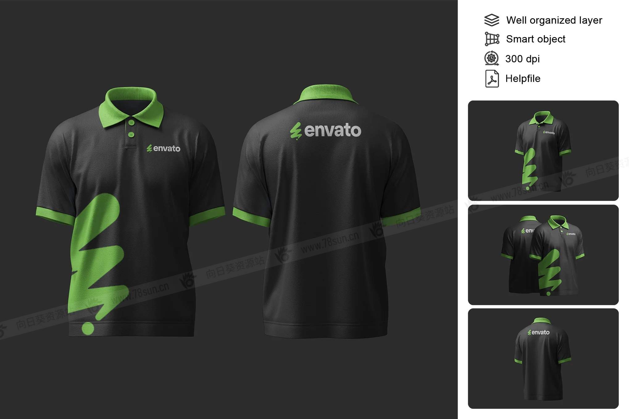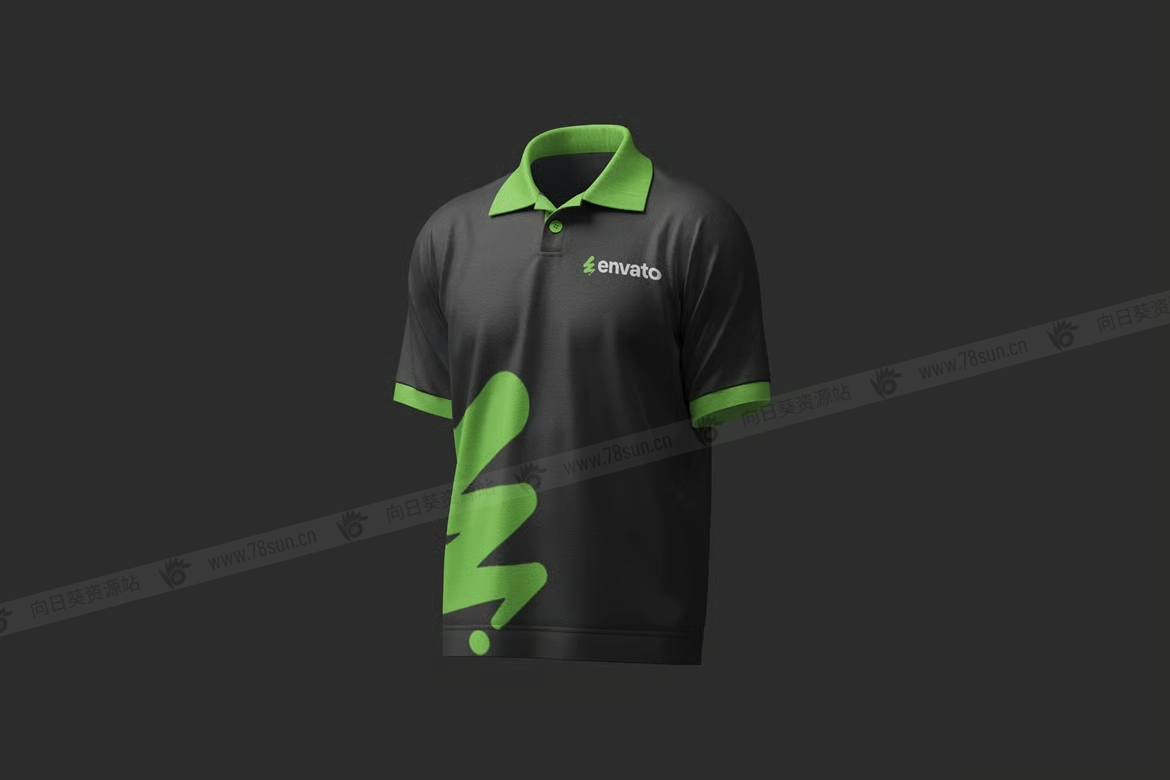 Polo衫T恤服装品牌VI效果图展示智能贴图psd设计样机,此模型包括 04 个具有分层良好 PSD 文件,并且此模型还使用智能对象功能,这意味着您可以在几秒钟内轻松快速地使用自己的设计更改当前设计。