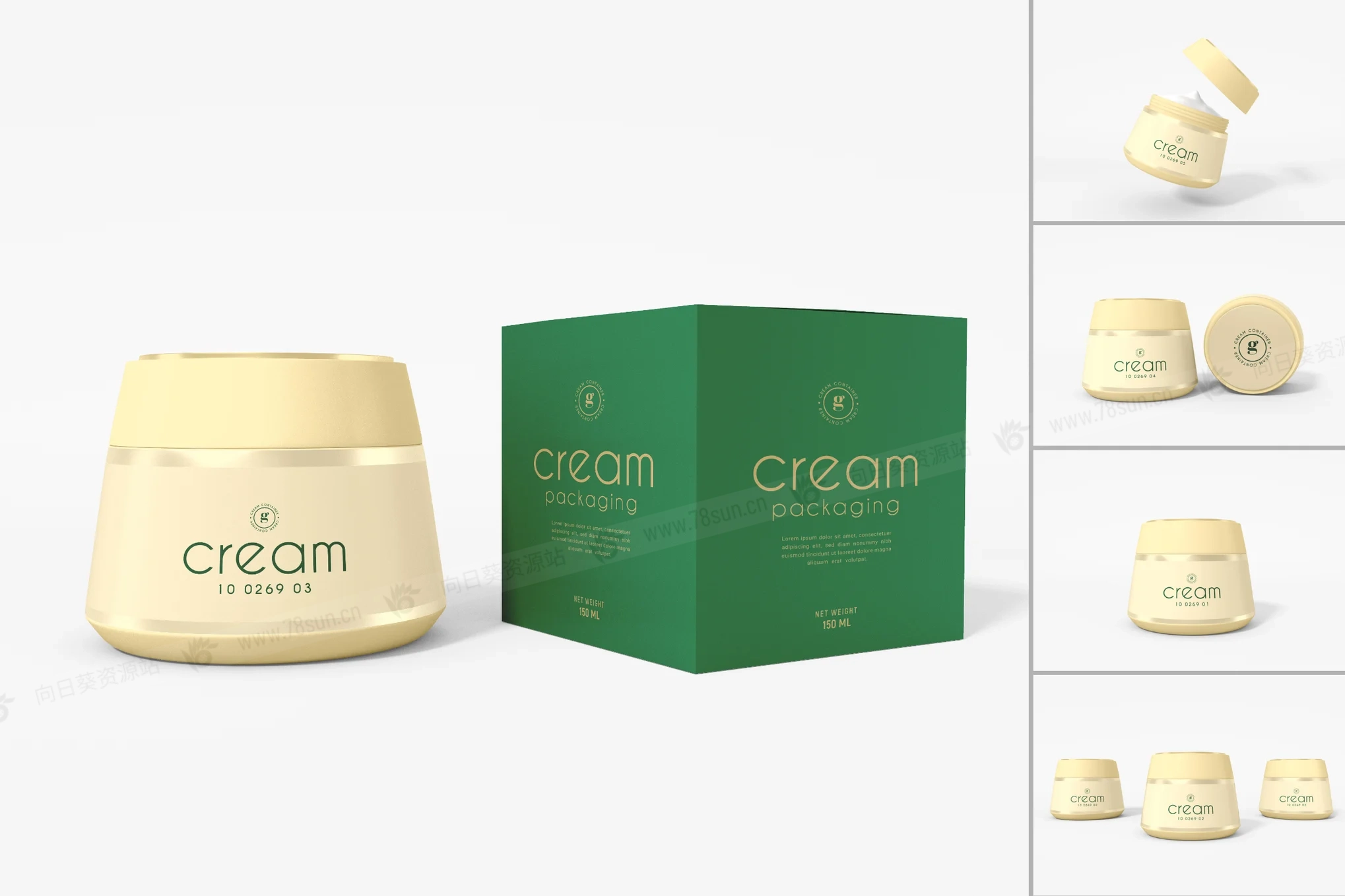 化妆品面霜罐包装纸盒品牌VI效果图展示智能贴图psd设计样机,使用 Photoshop 智能对象功能使这些模型文件易于编辑,您可以轻松替换您的设计和背景颜色,以在几秒钟内创建您喜欢的外观。这些文件是高度可定制的,因此您可以创建您选择的不同外观。只需遵循用户指南 (PDF)