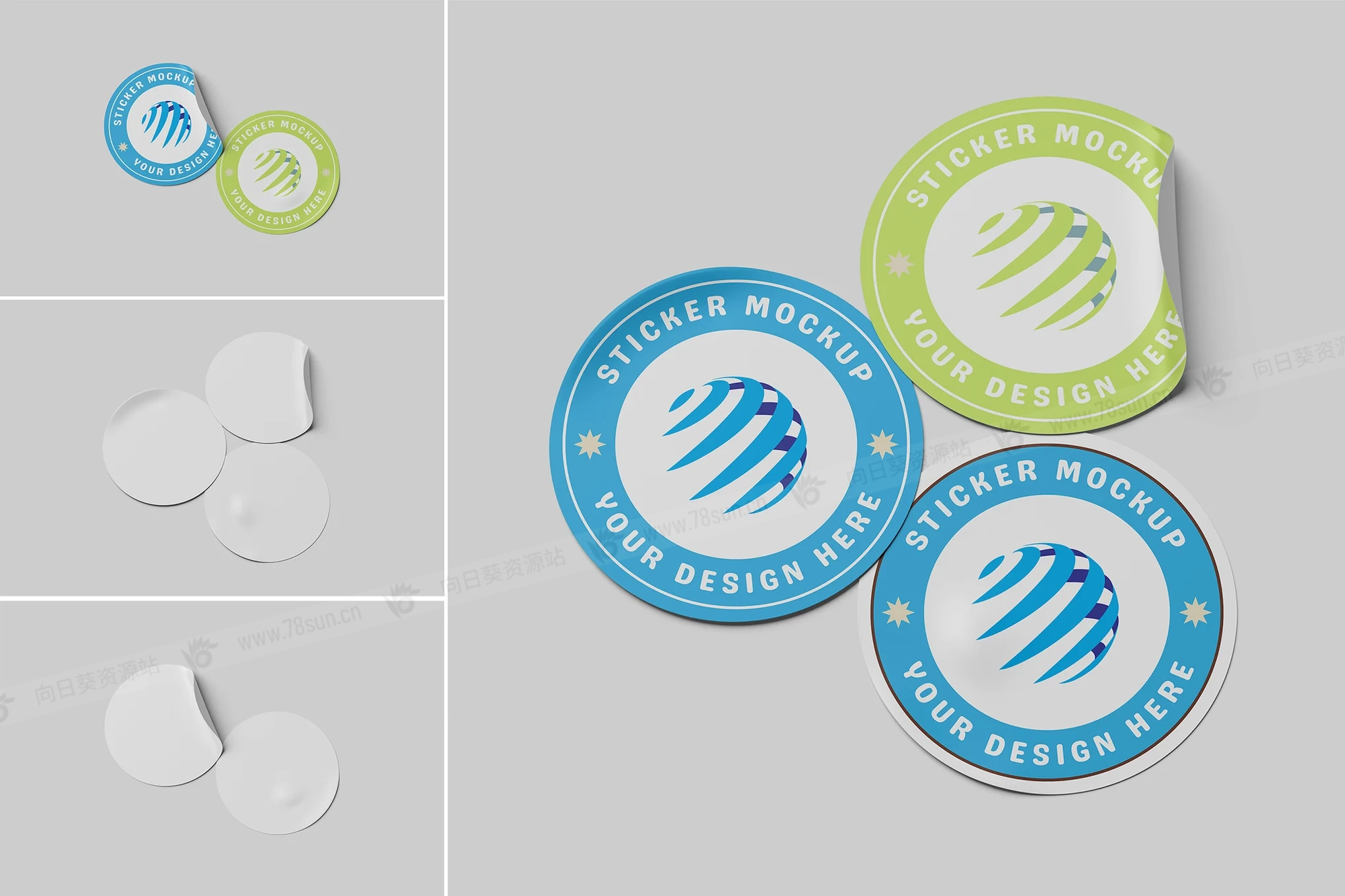 圆形剥皮贴纸品牌VI效果图展示智能贴图psd设计样机。这是智能对象功能中的 Photoshop 文件、分层和可编辑设计。编辑和节省时间很容易。只需双击智能对象的图层缩略图,它就会打开新文档,然后将您的设计粘贴到其中并保存。